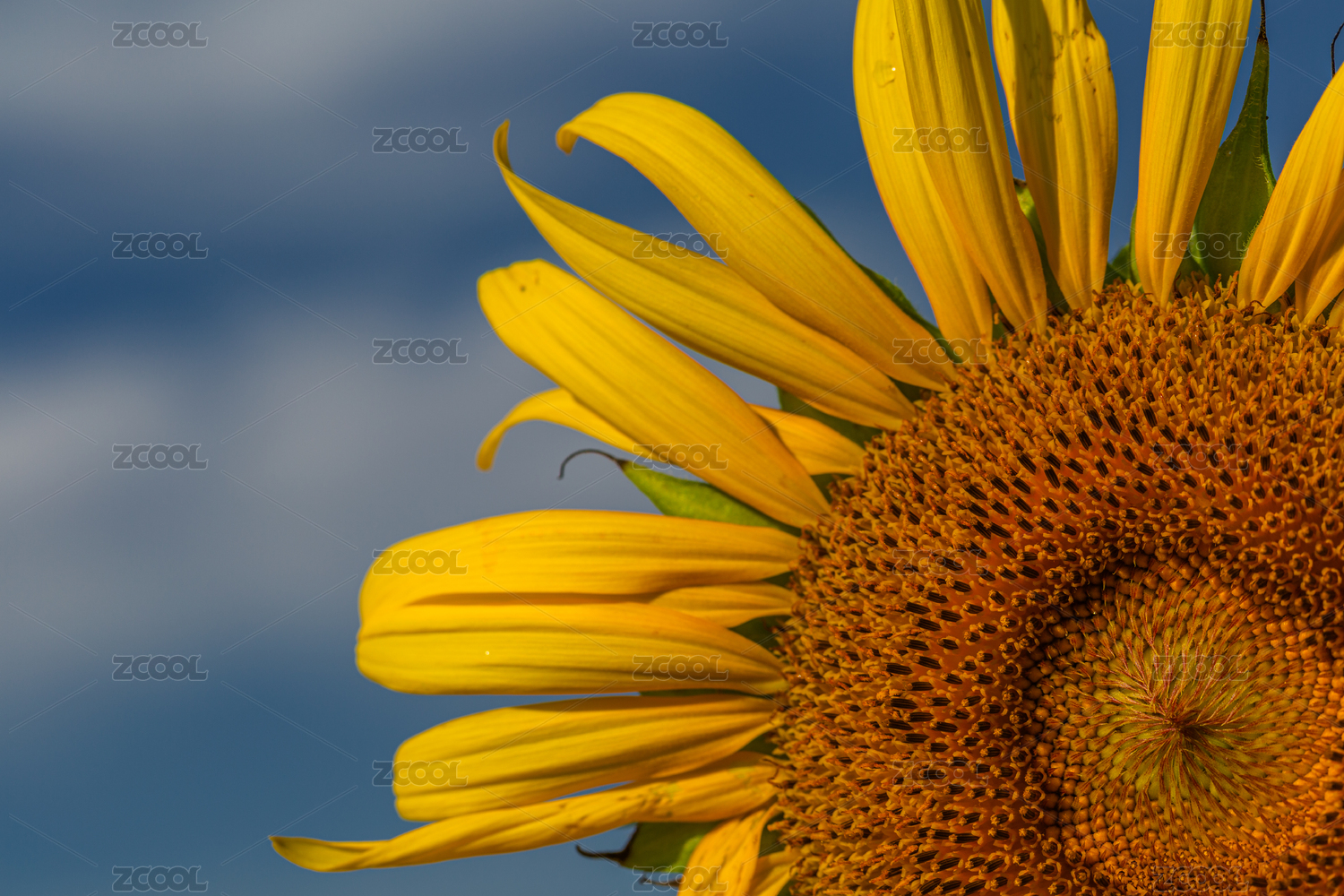 蓝色天空下的一朵金黄色盛开着的向日葵