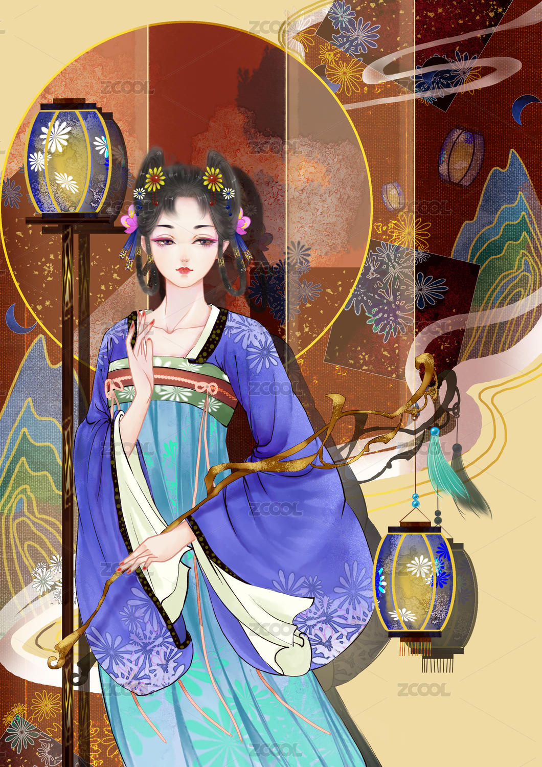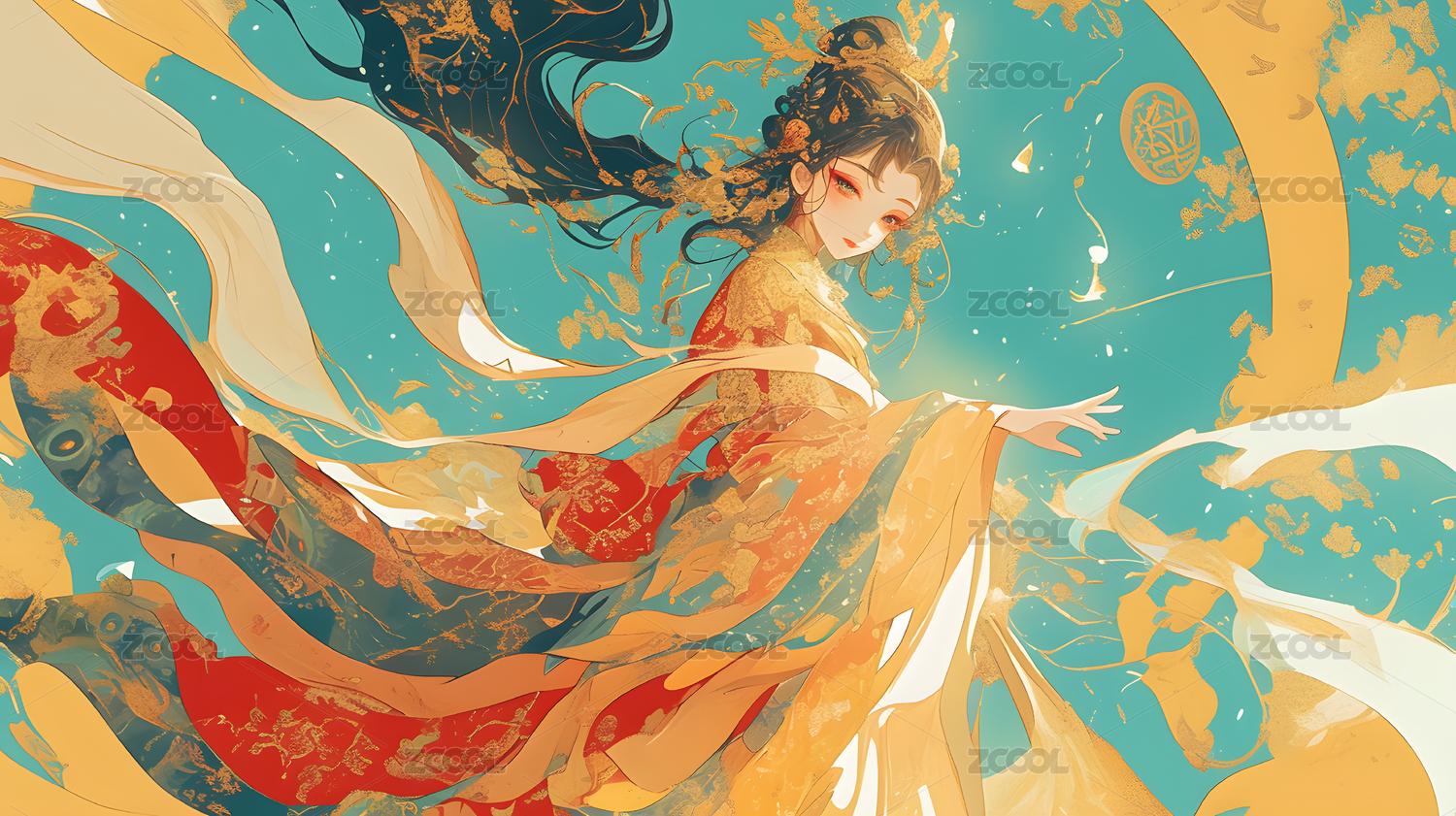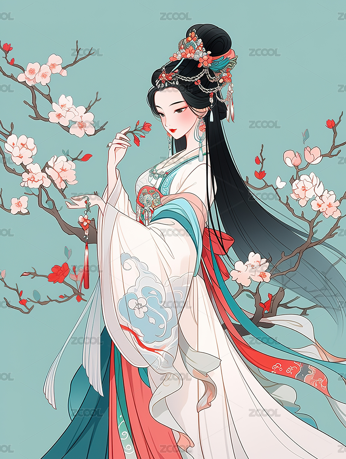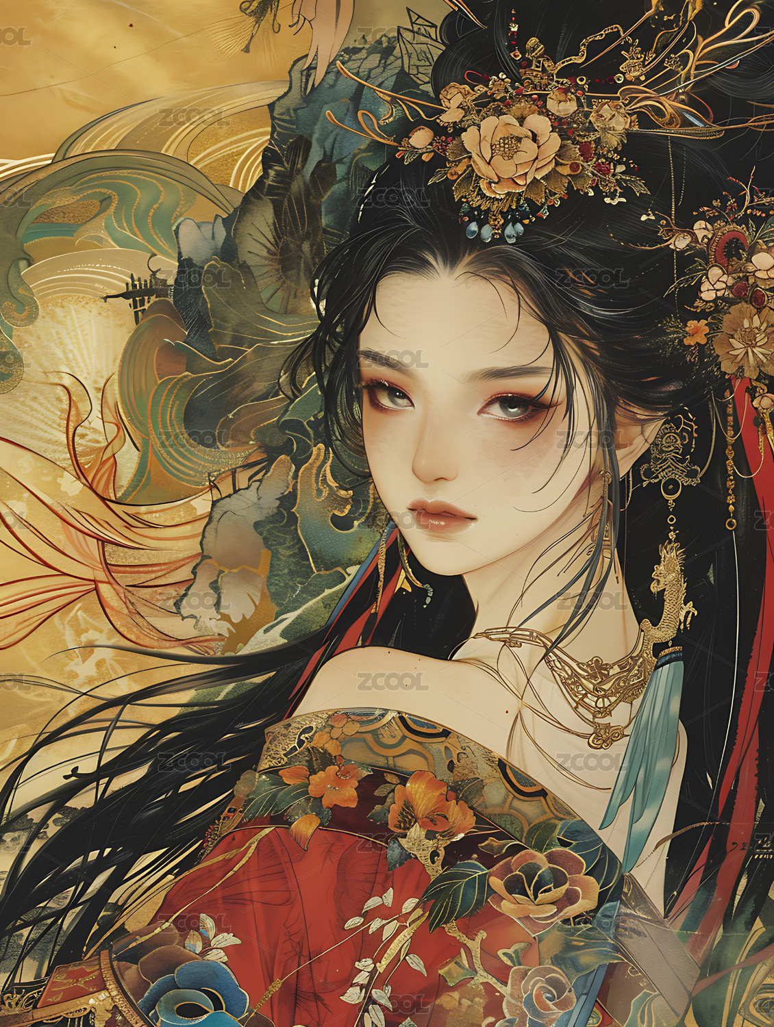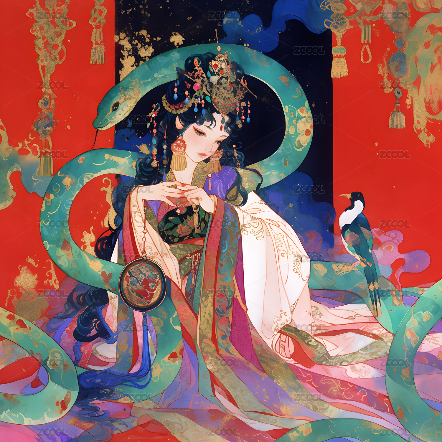 AIGCFG,国潮风,古代女子,蛇,鸟