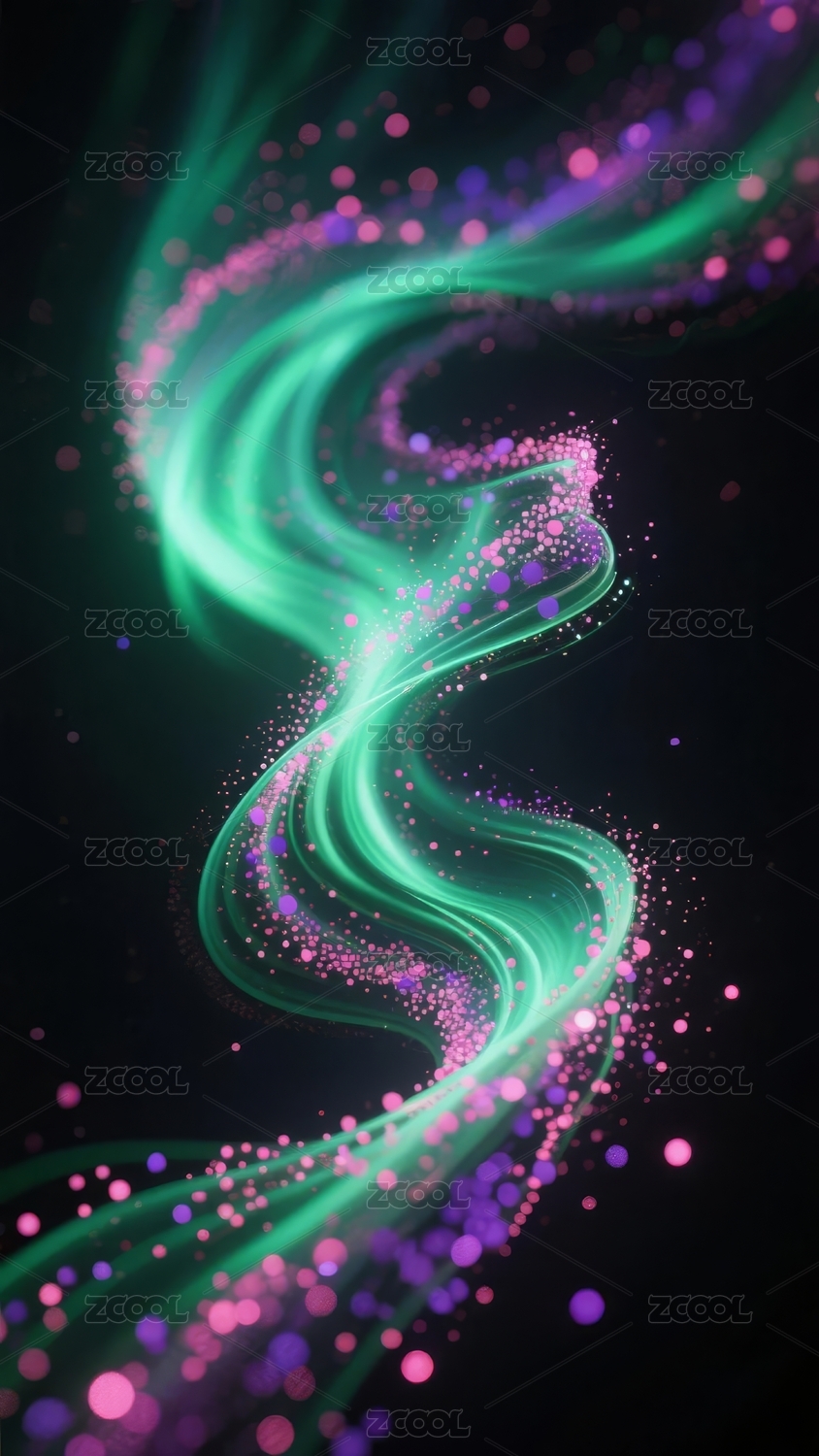 绿色光晕缠绕闪烁,星光点缀梦幻