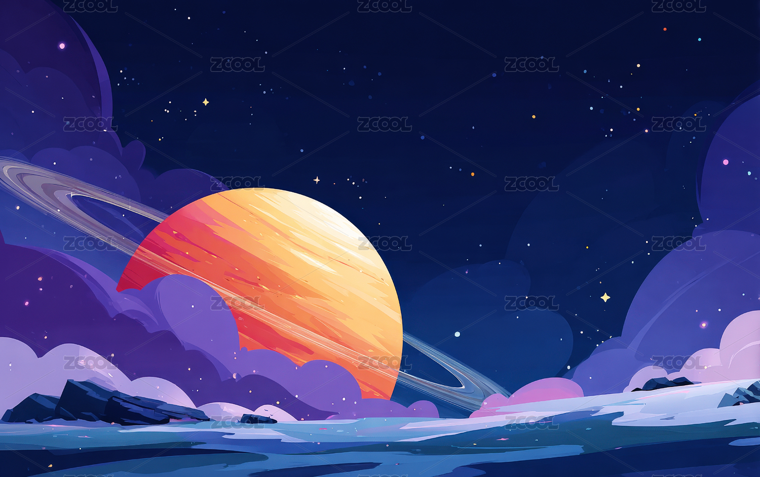 星空下带有环的绚丽星球