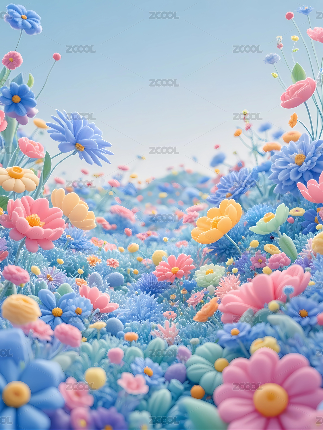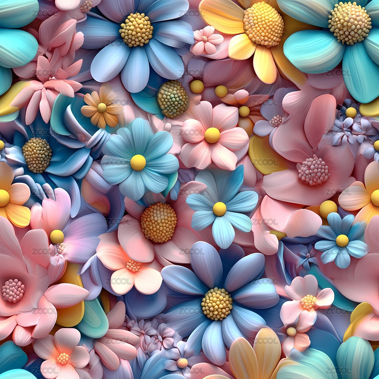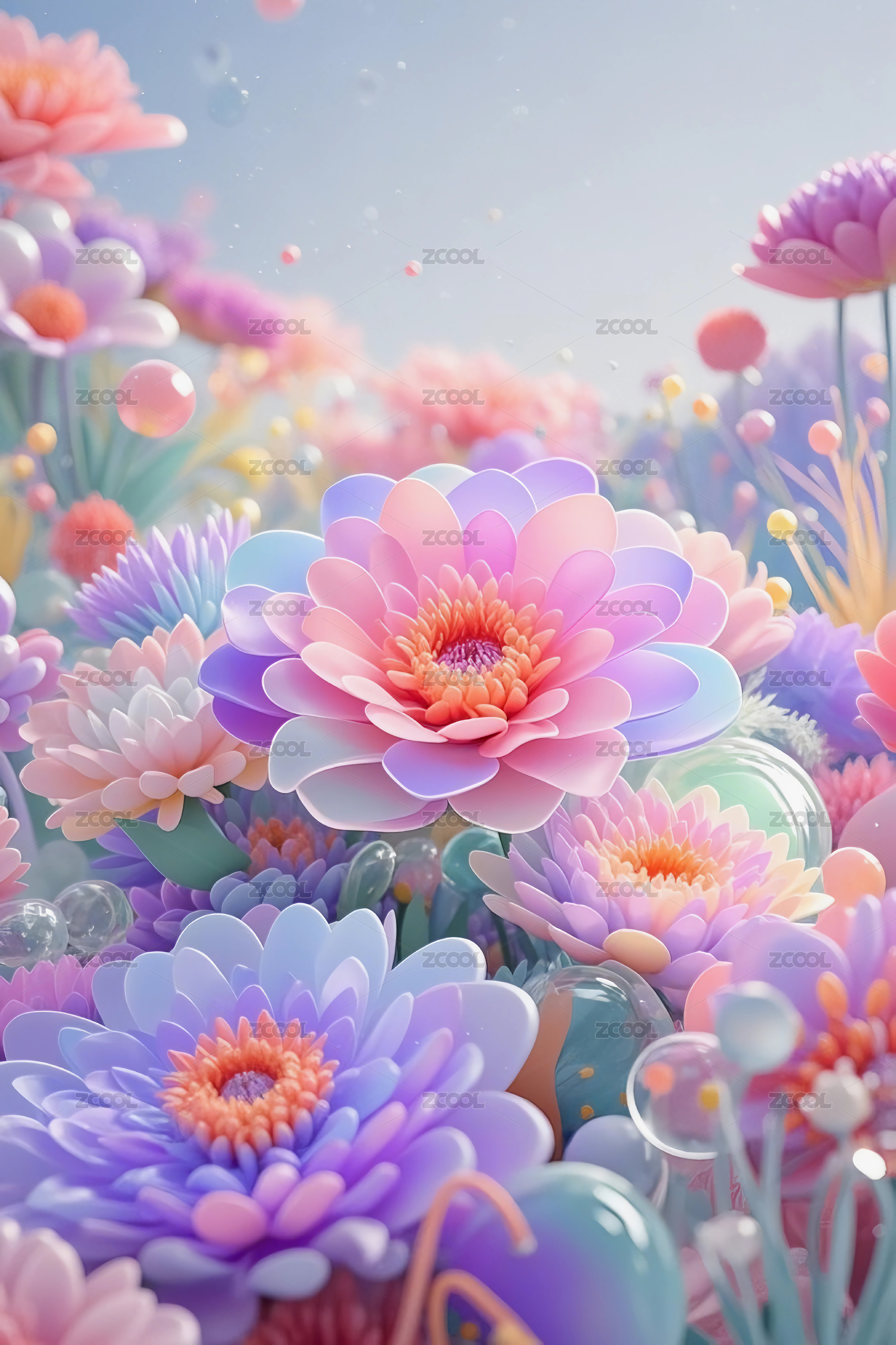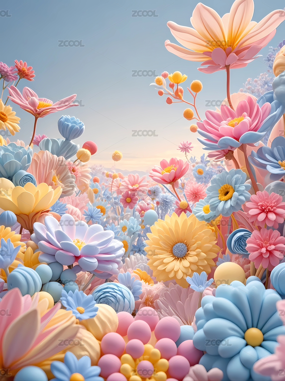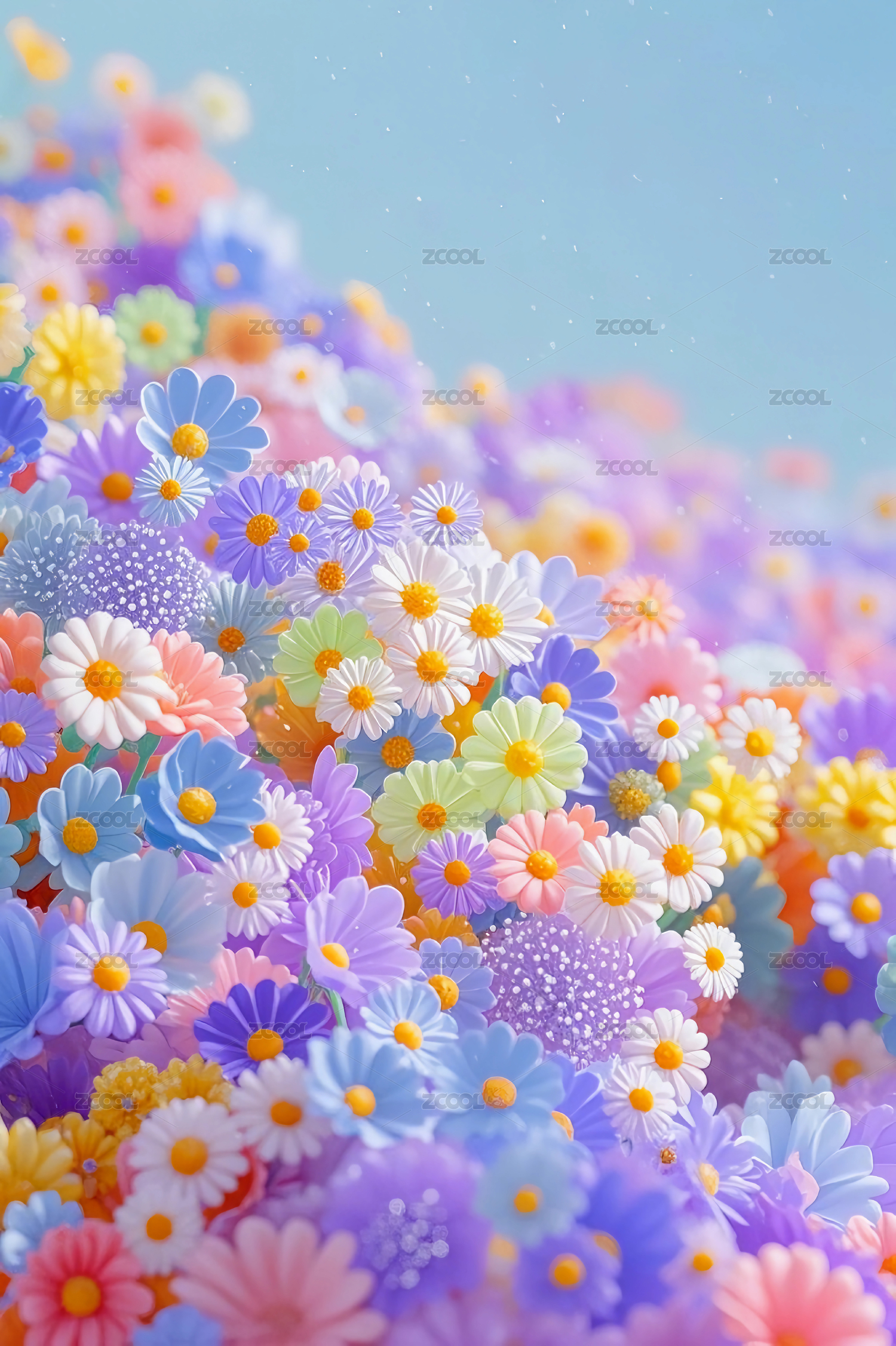 可爱的毛绒花朵图案纹理春天素材三维图形