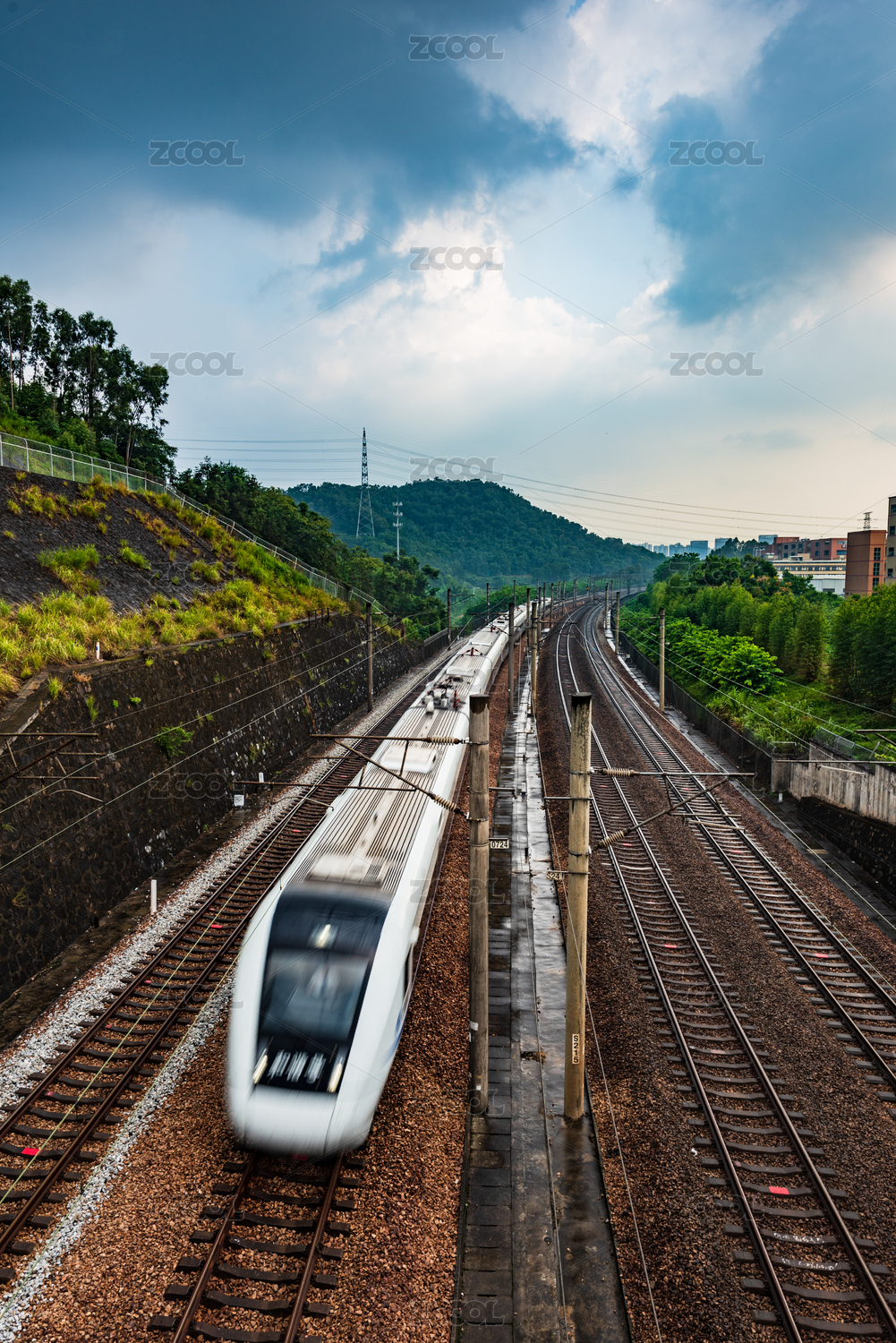 中国四川成都龙泉驿区高架桥上行驶的地铁