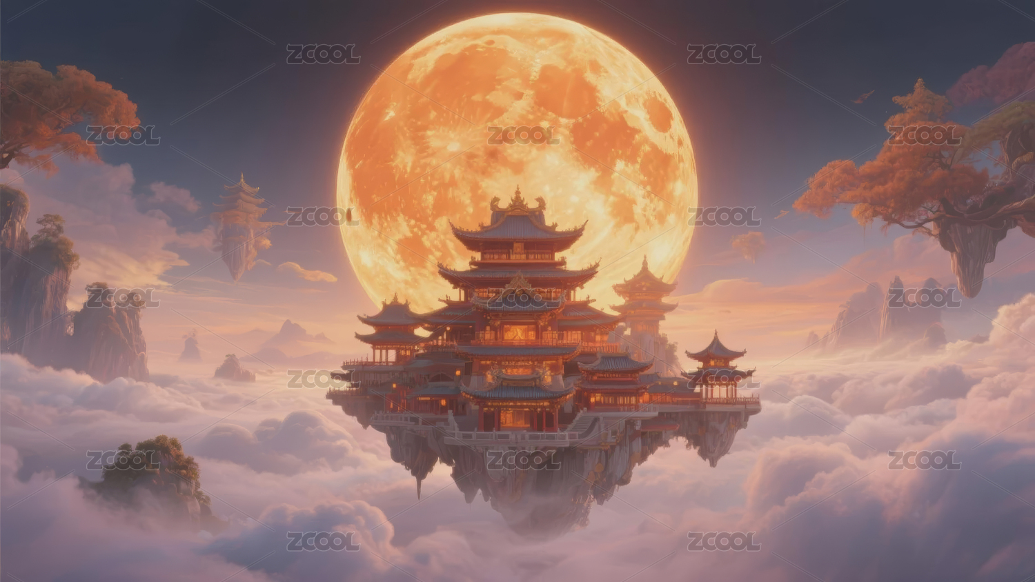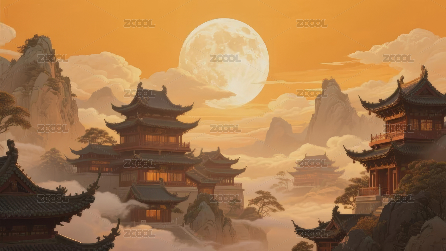 云端古塔映月