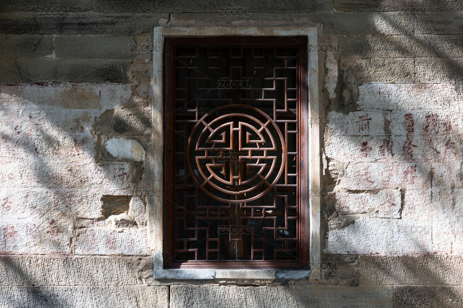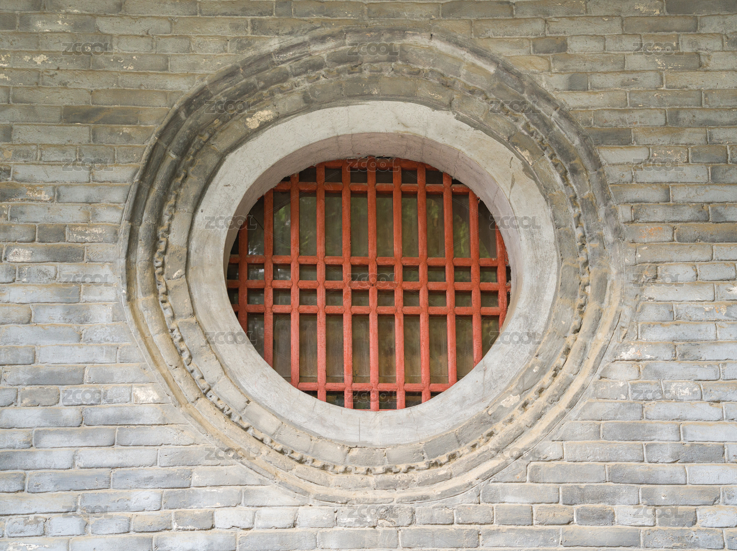 河南南阳卧龙岗武侯祠景区里古建筑圆形窗户
