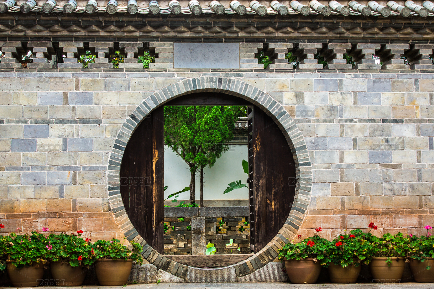 安徽省黟县陶渊明故居园林守拙园圆型拱门
