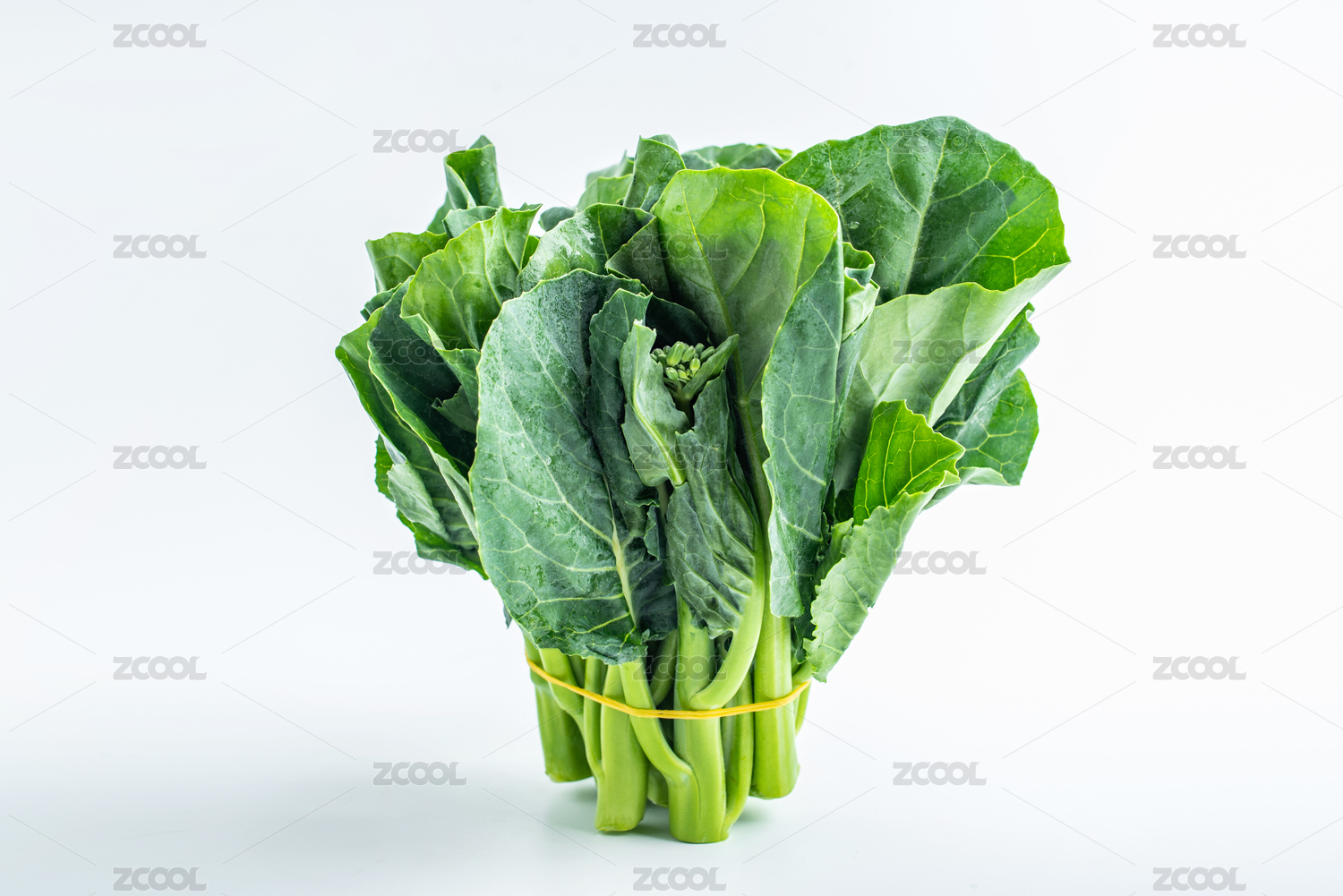 放在白色背景上的一颗绿色乌塌菜俯拍
