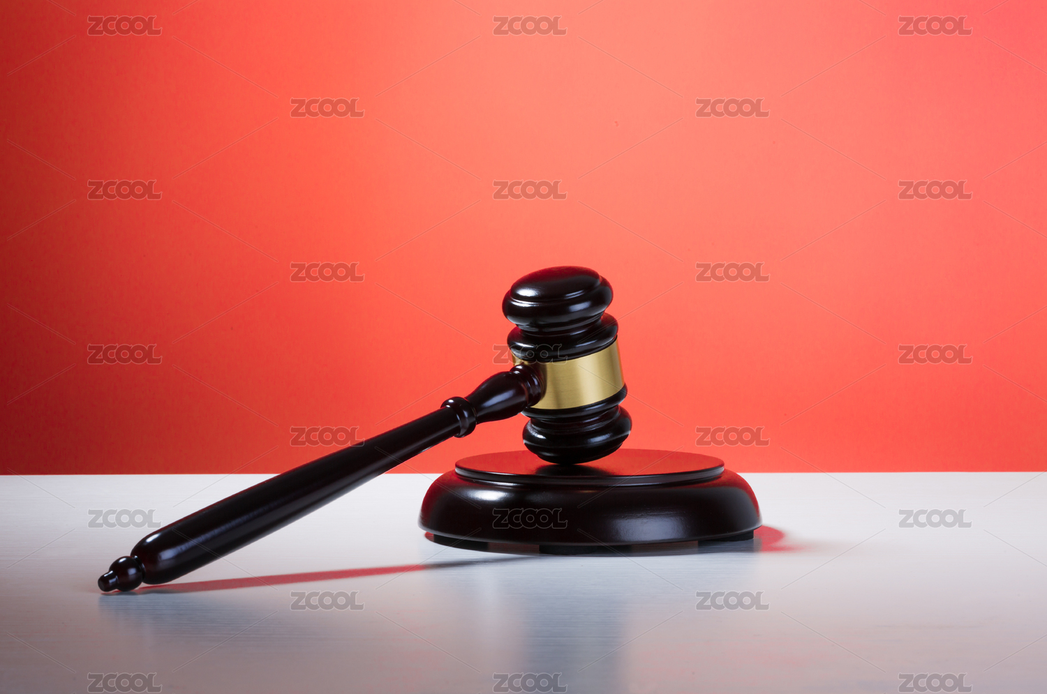 一个法官锤在桌子上,红色背景