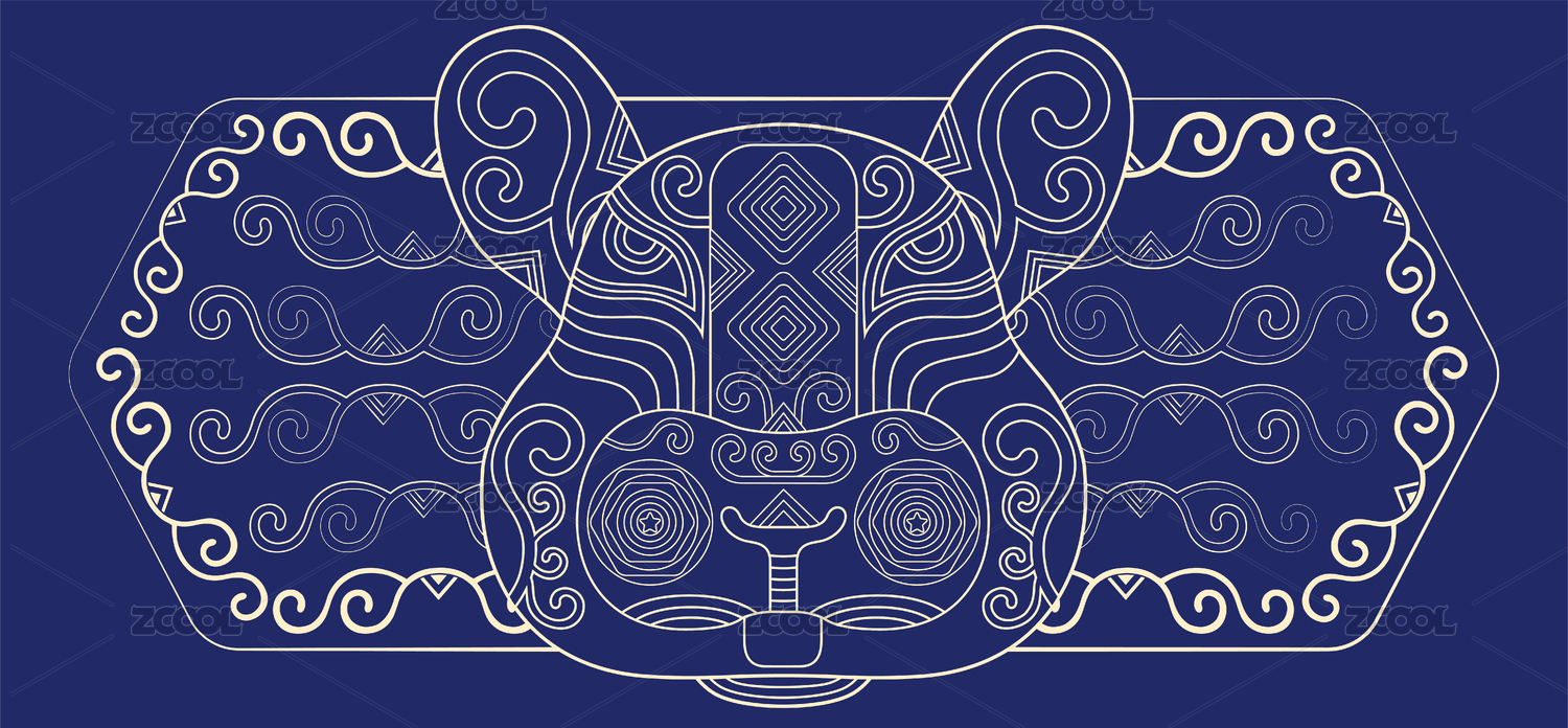 虎十二生肖传统中国风纹样金色线描矢量插画