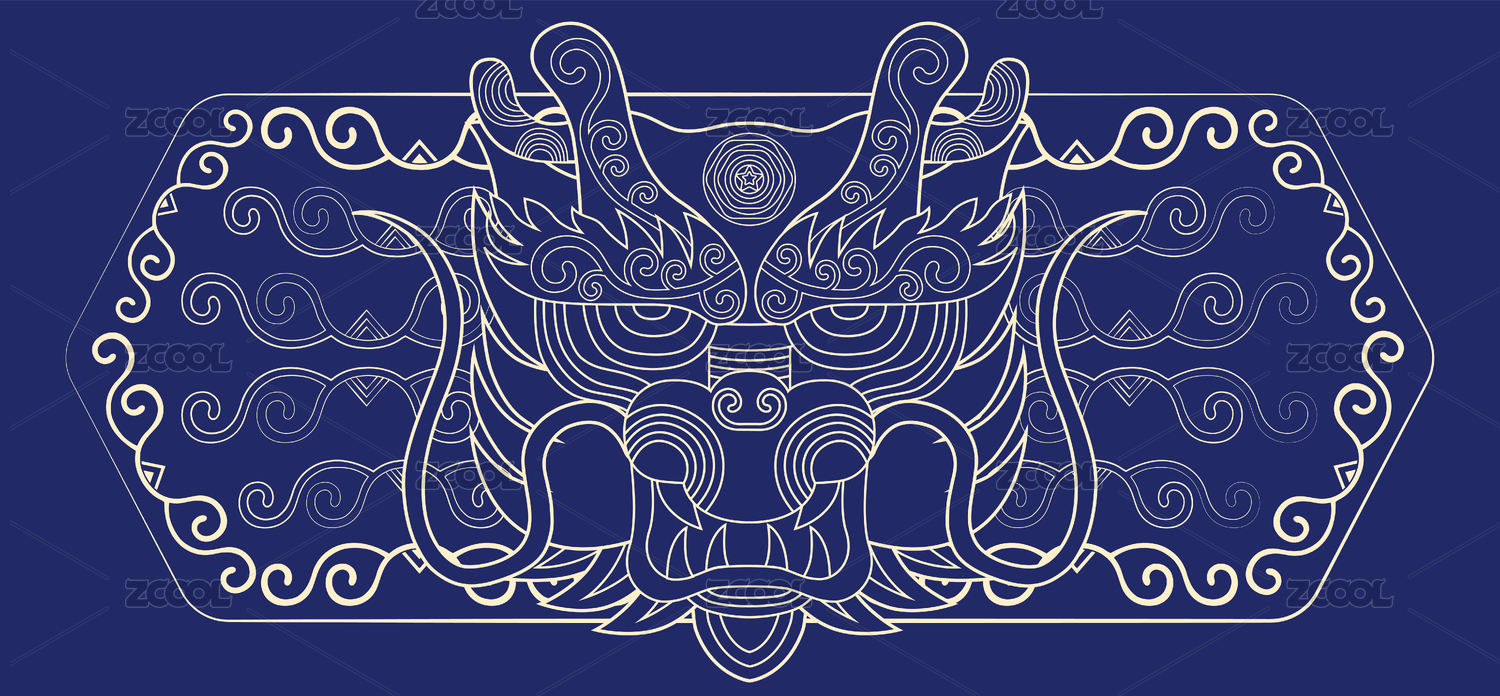 龙十二生肖传统中国风纹样金色线描矢量插画