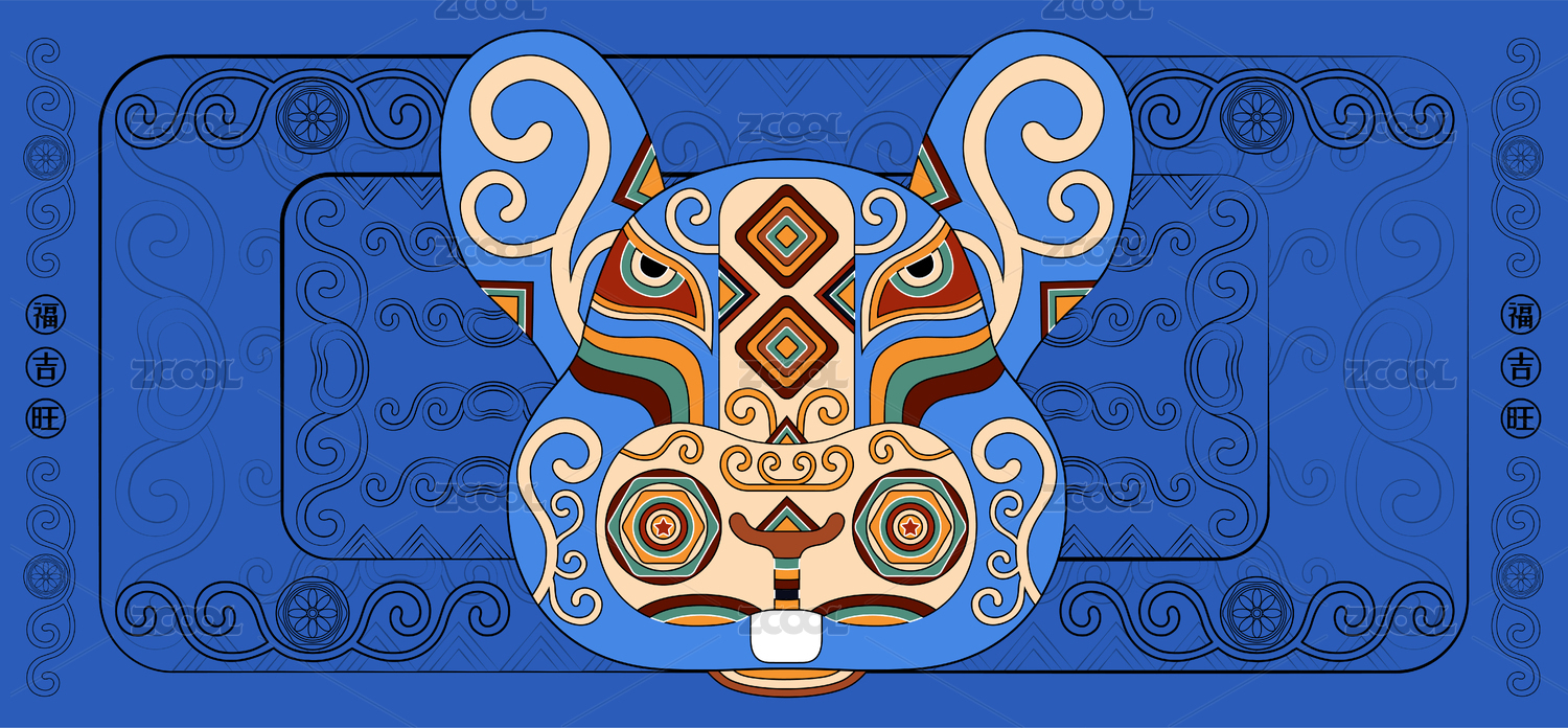 卯兔十二生肖国潮传统艺术装饰纹样卡通形象