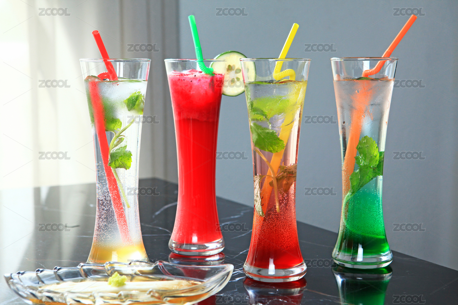 三杯不同口味冷饮水果饮料草莓柠檬苹果