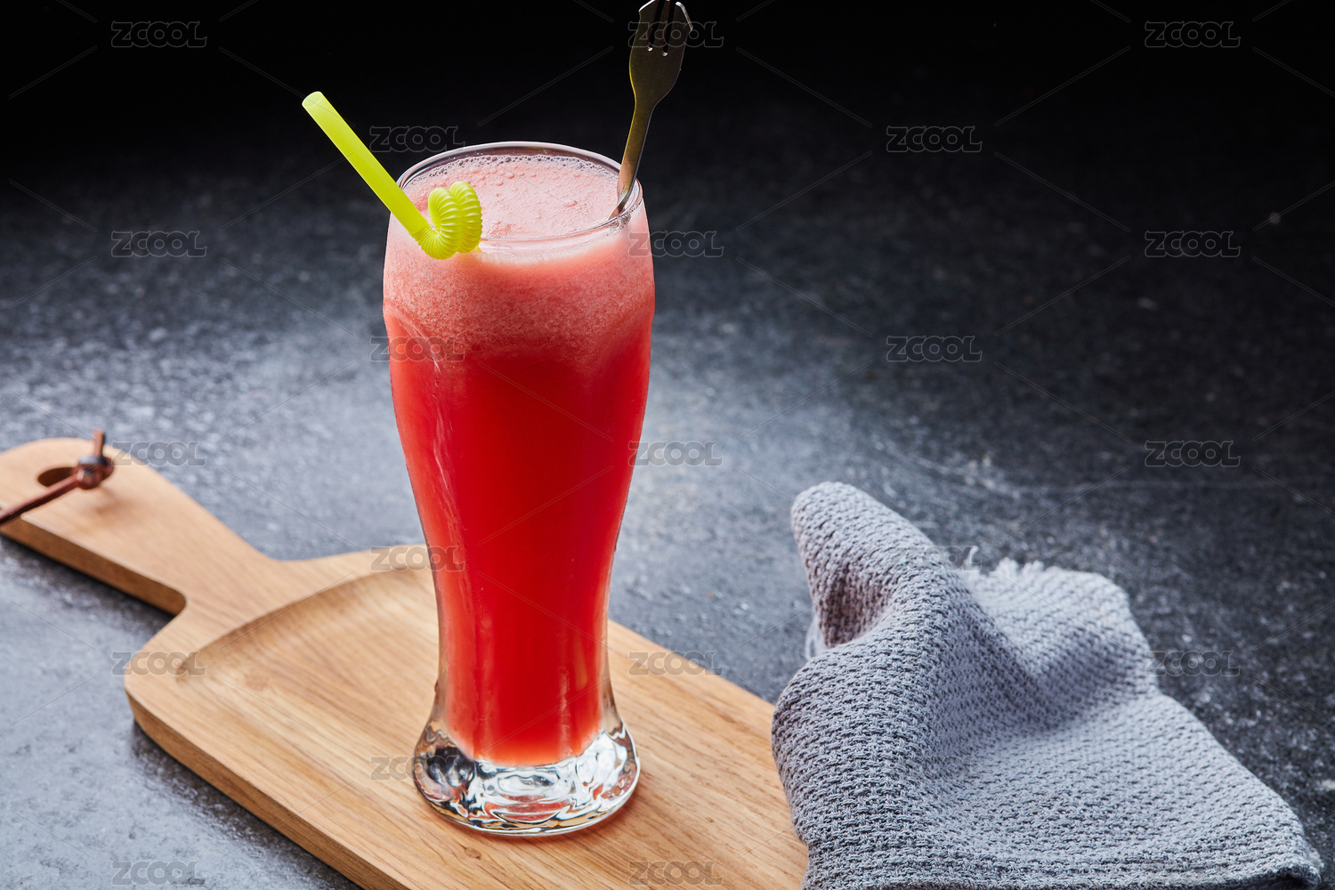 放在深色背景上杯子里的鲜榨水蜜桃果汁