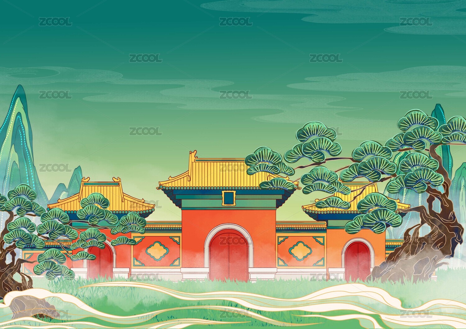 天津,天津市,建筑,地标,古建筑,城市,名胜古迹,中式建筑,著名景点,国风插画