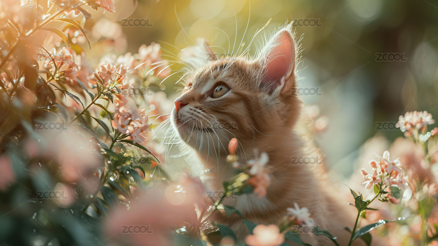 可爱的布偶猫在花丛中动物卡通插画壁纸