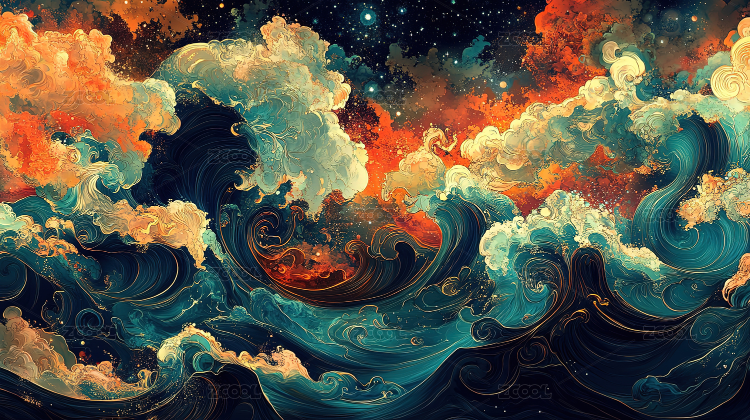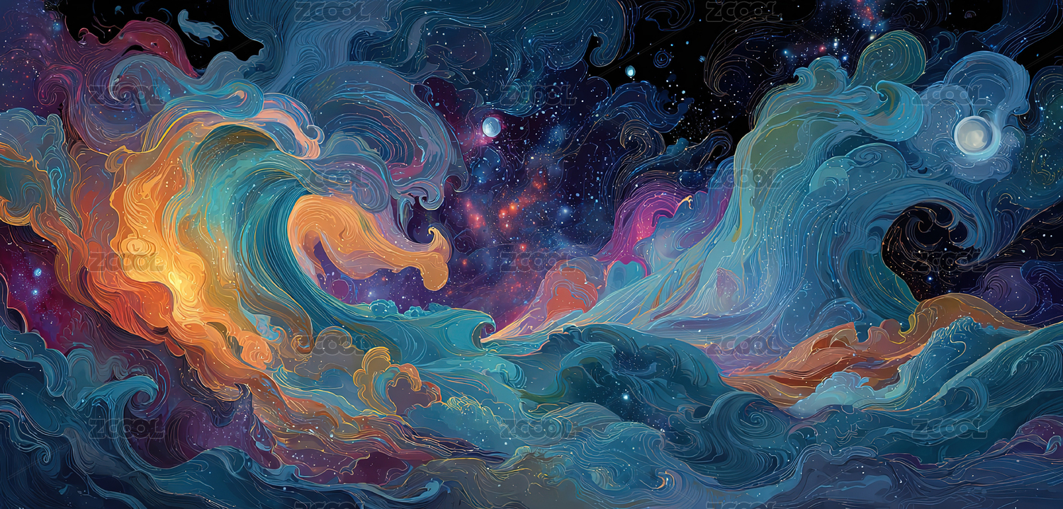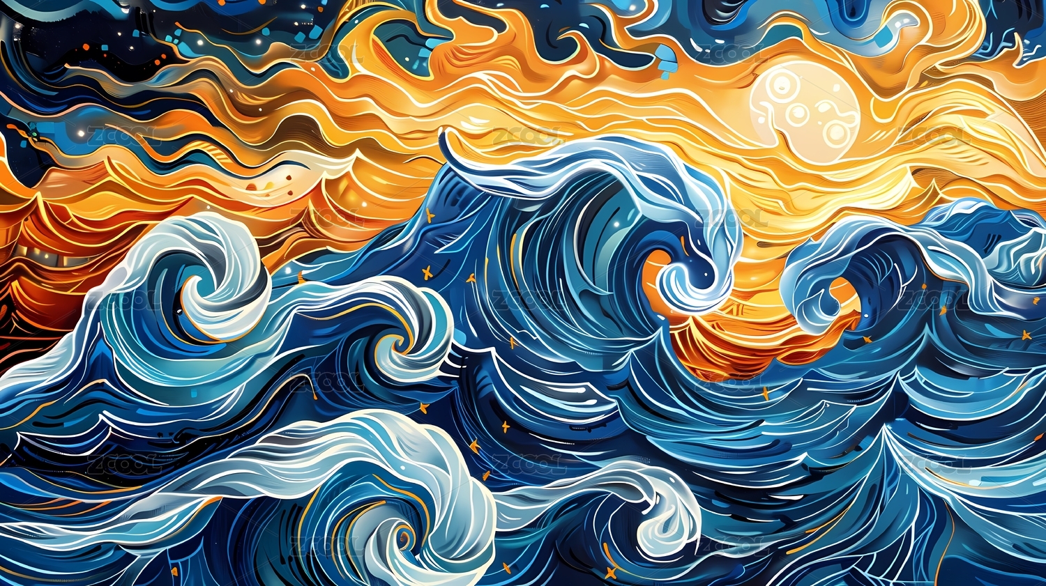 手绘卡通艺术抽象梵高风格印象派背景素材