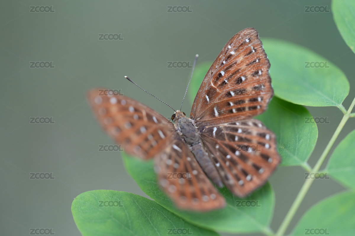 一只蝴蝶(小眉眼蝶)在叶子上特写镜头