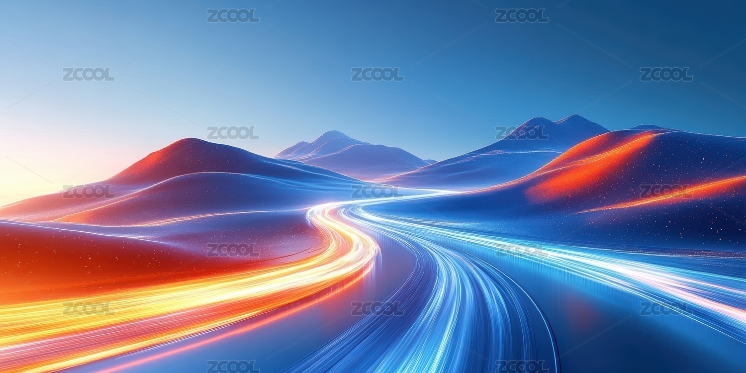 彩虹,光线,绘画,形状,蜿蜒,道路,沙丘,日落,山丘,海报