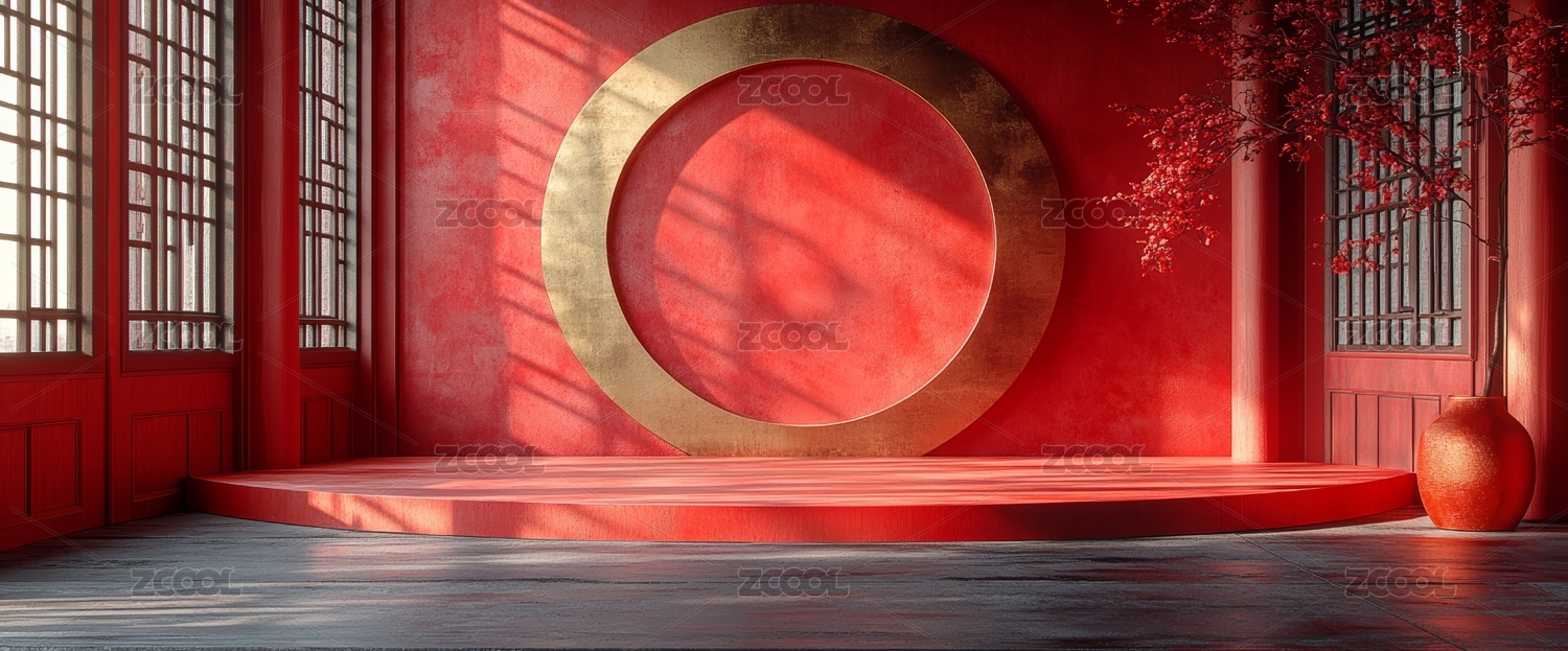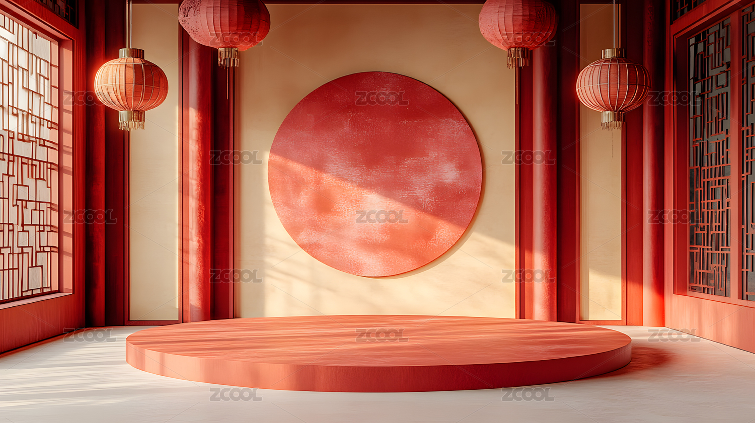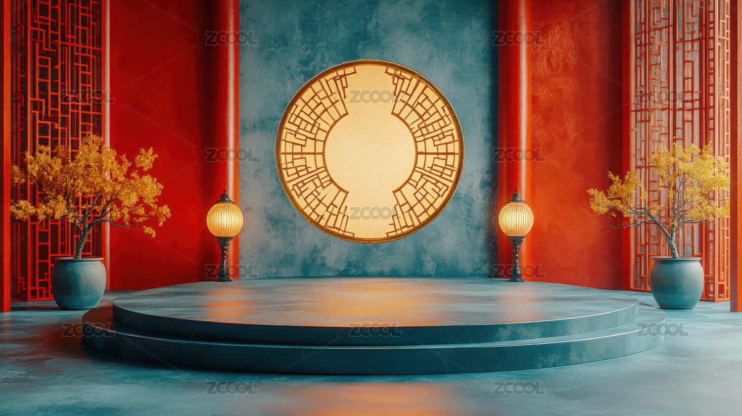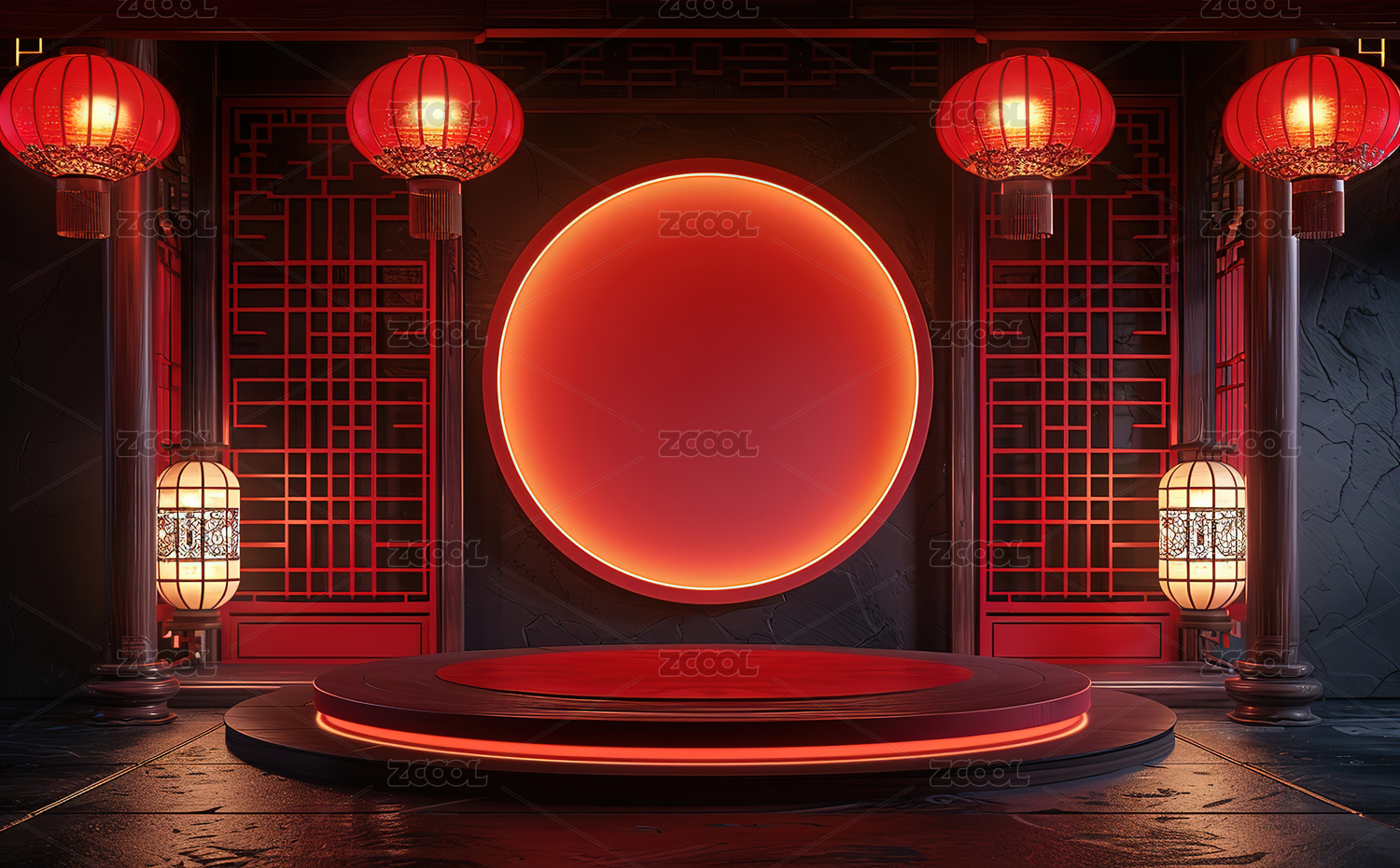 中国风,红色,喜庆,蓝色,产品展台,节日,灯笼,3D渲染,产品展示台,场景