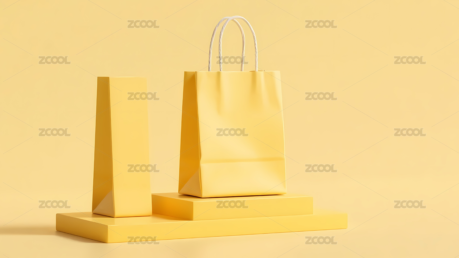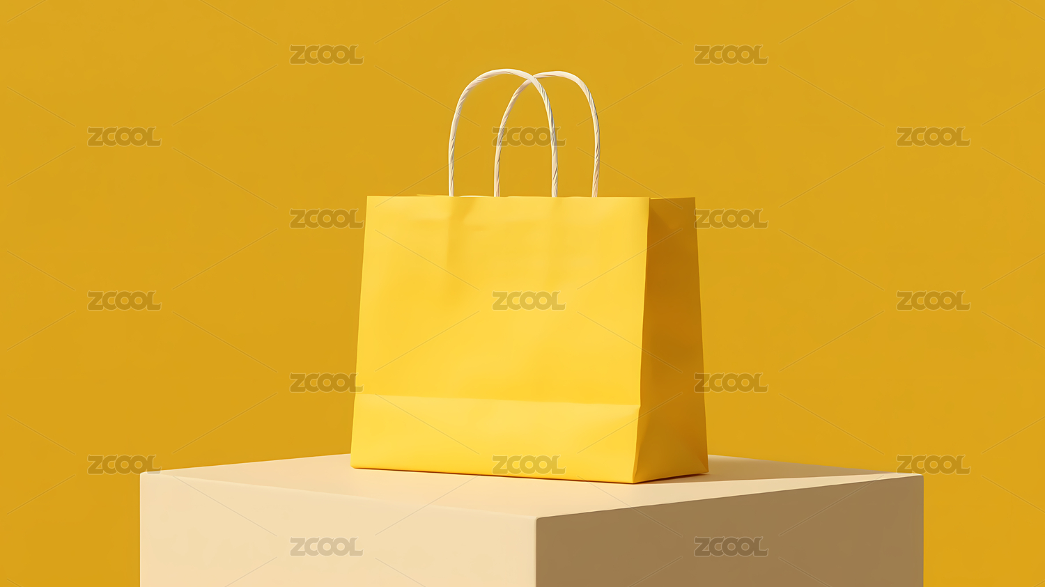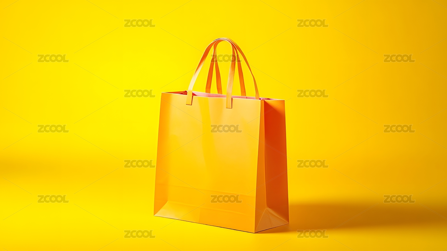 红色纸盒子上一只购物袋,时尚炫彩消费购物概念海报