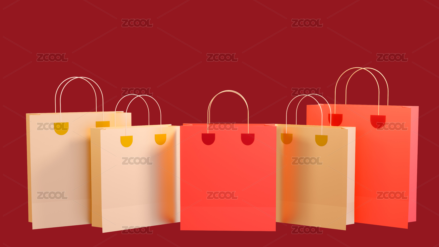 3d中式年货节春节集市摊喜庆购物袋元素插