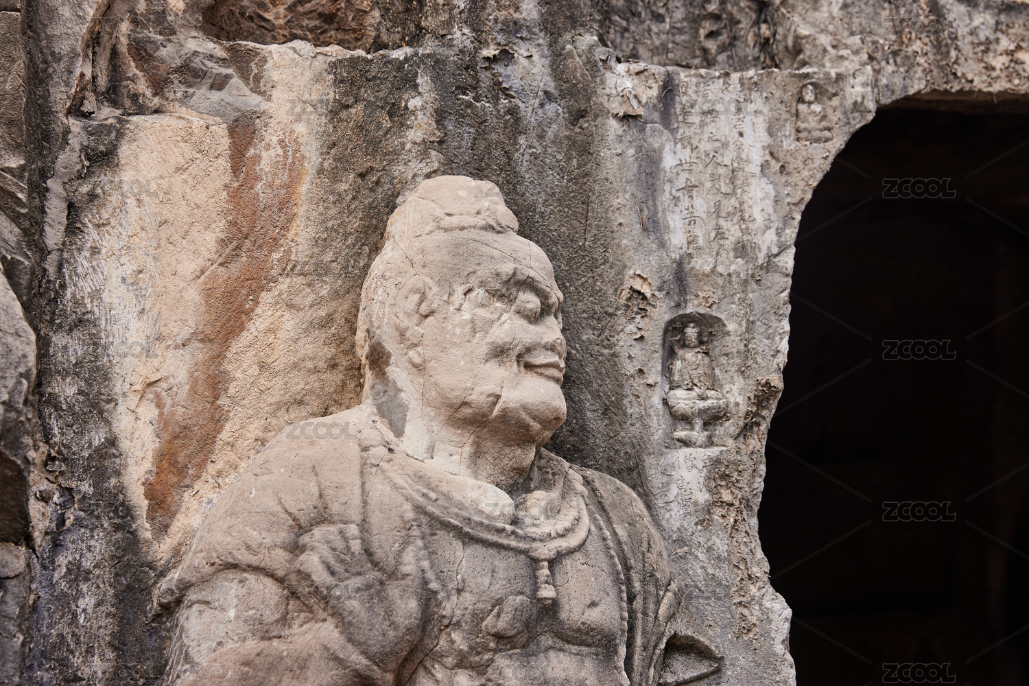 中国河南洛阳龙门石窟奉先寺的天王脚下踩的夜叉雕像