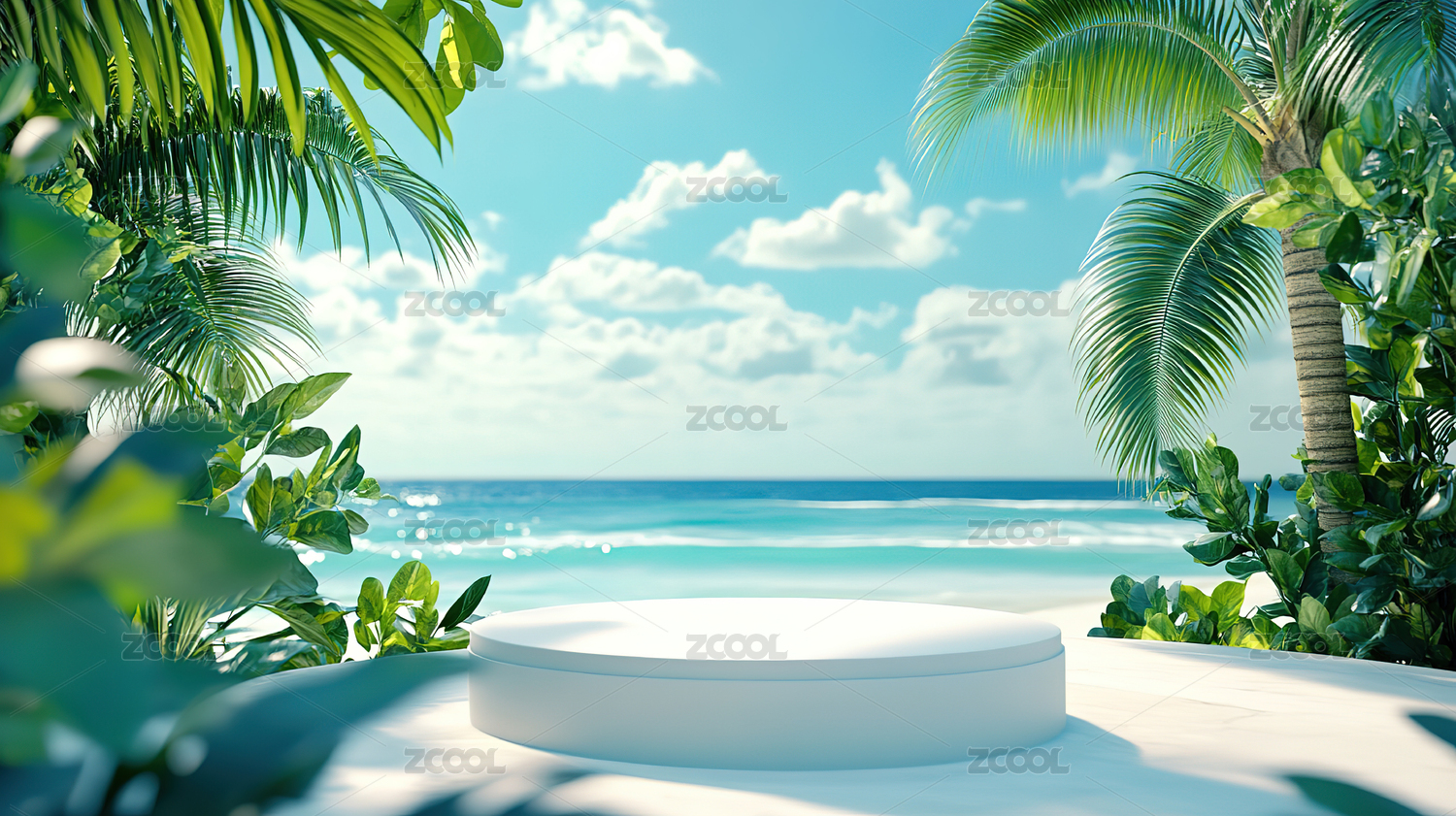 热带海滩上的白色圆形平台