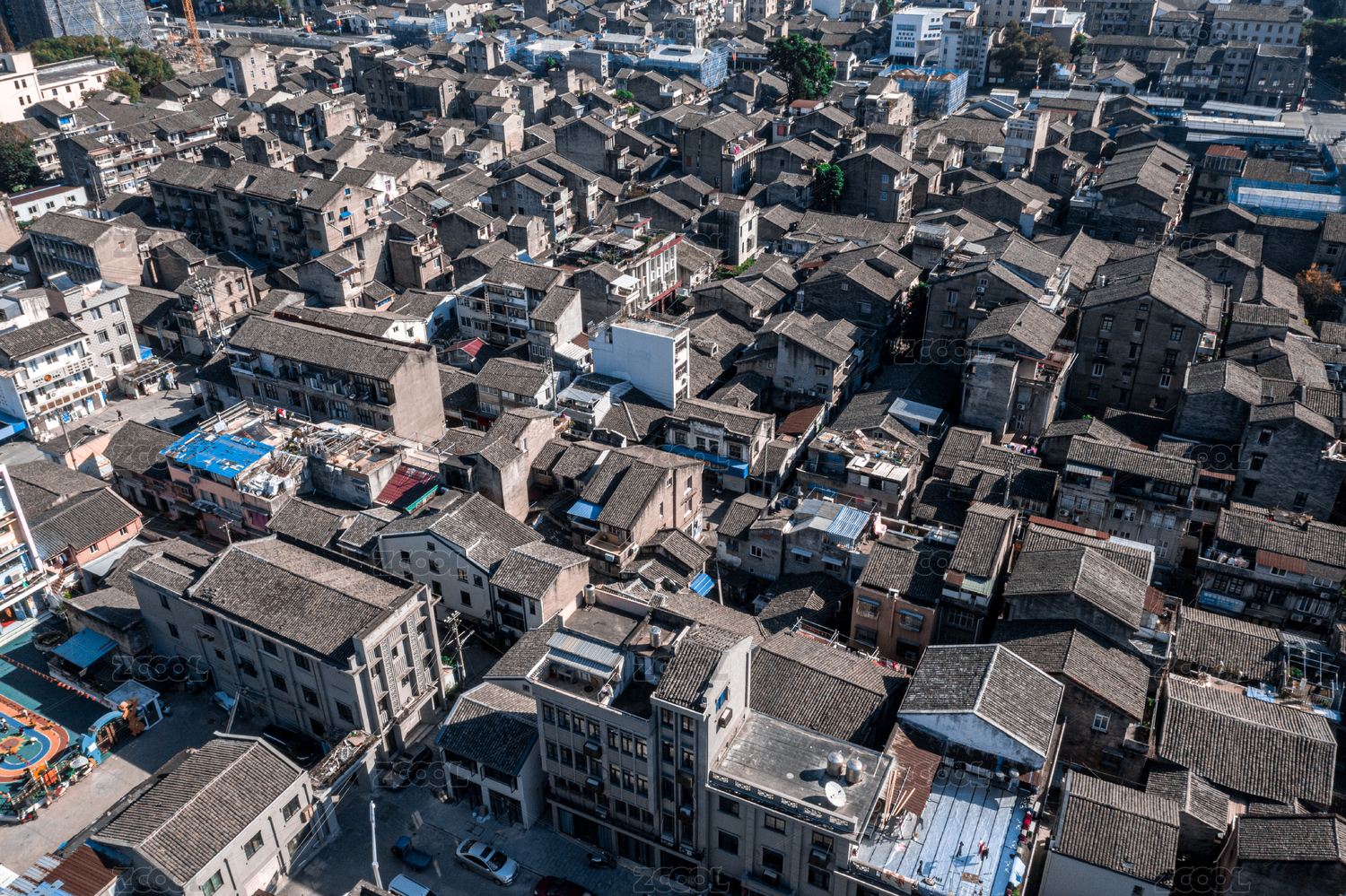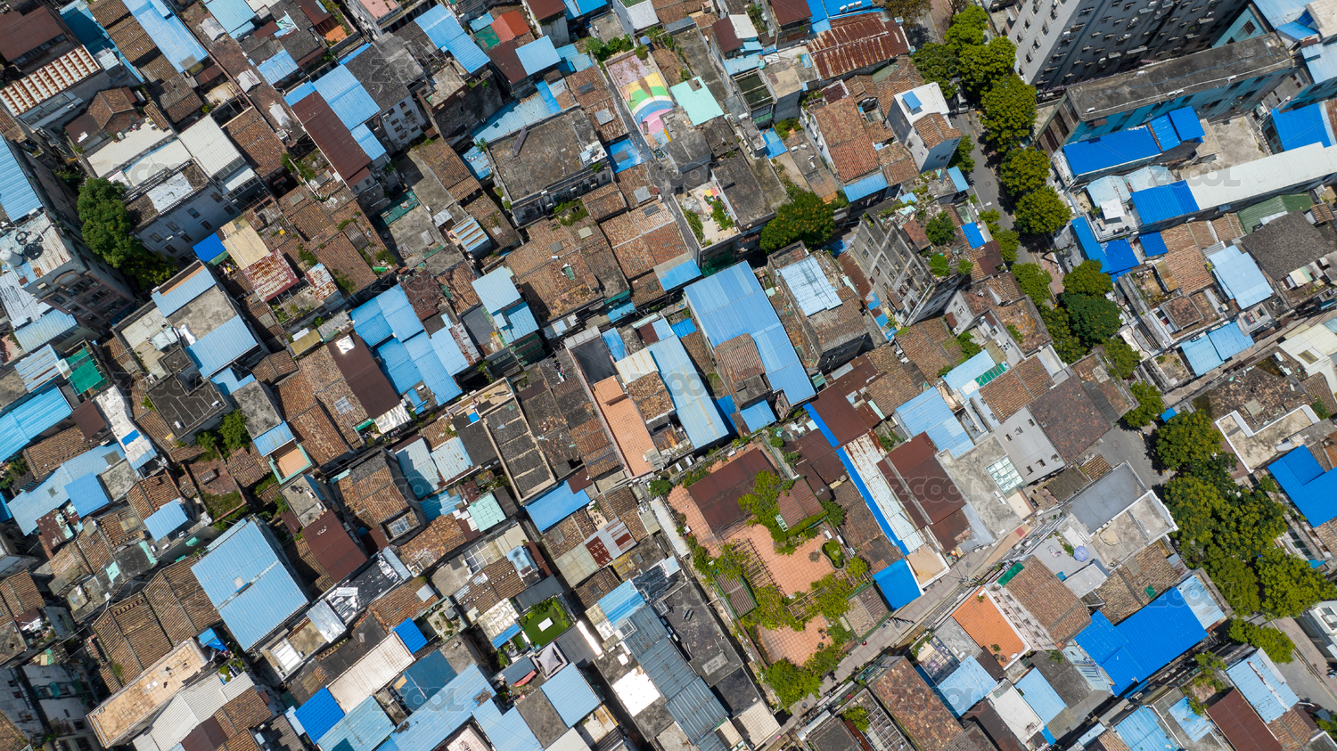 县城航拍视角下的城中村密集的楼房和自建房