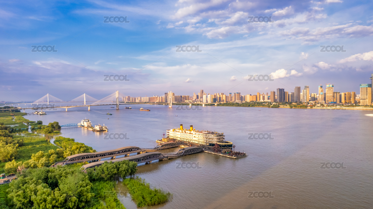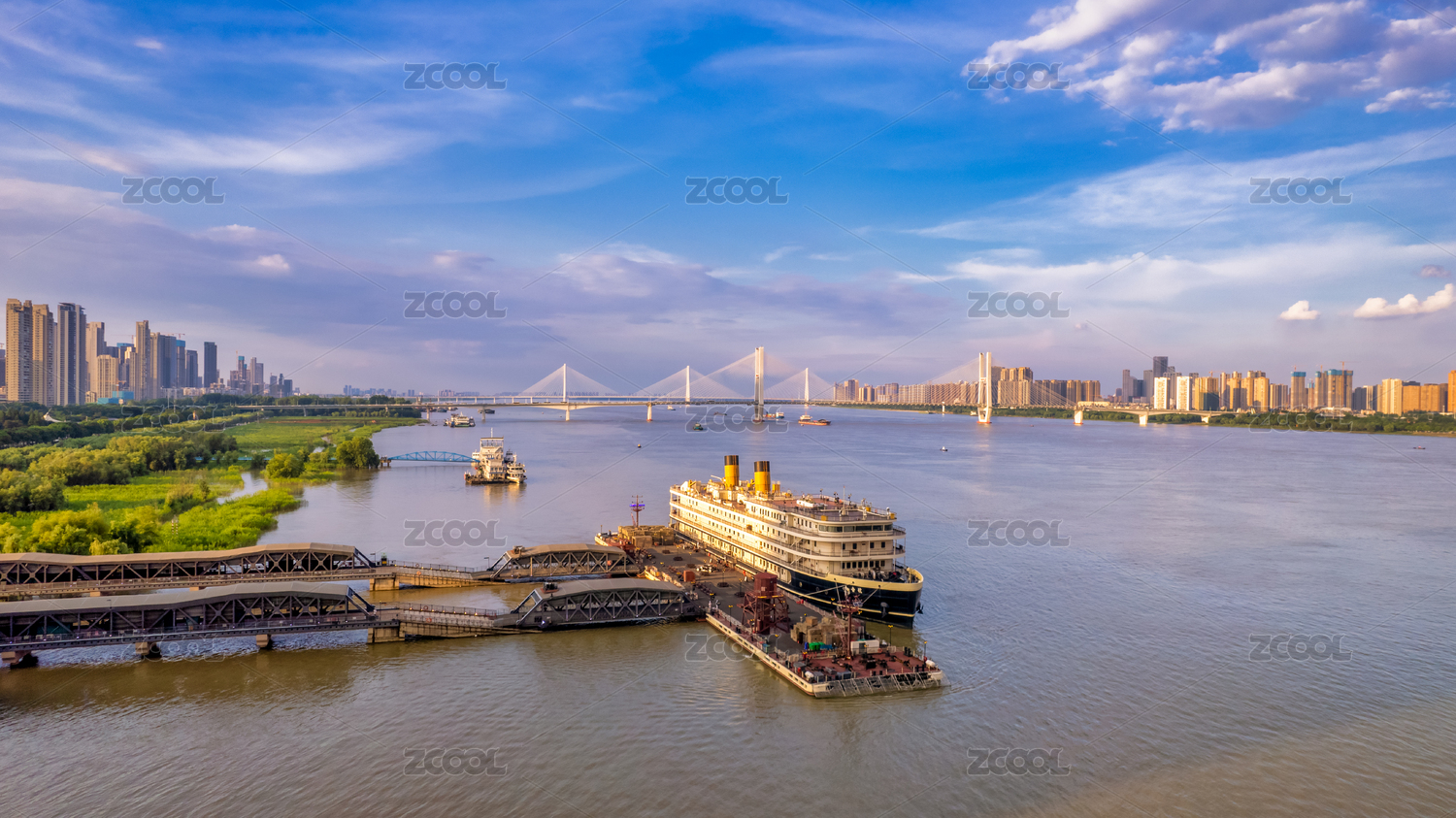 知音号,游轮,武汉,长江,武汉长江二桥,大桥,桥梁,船只,停靠,码头