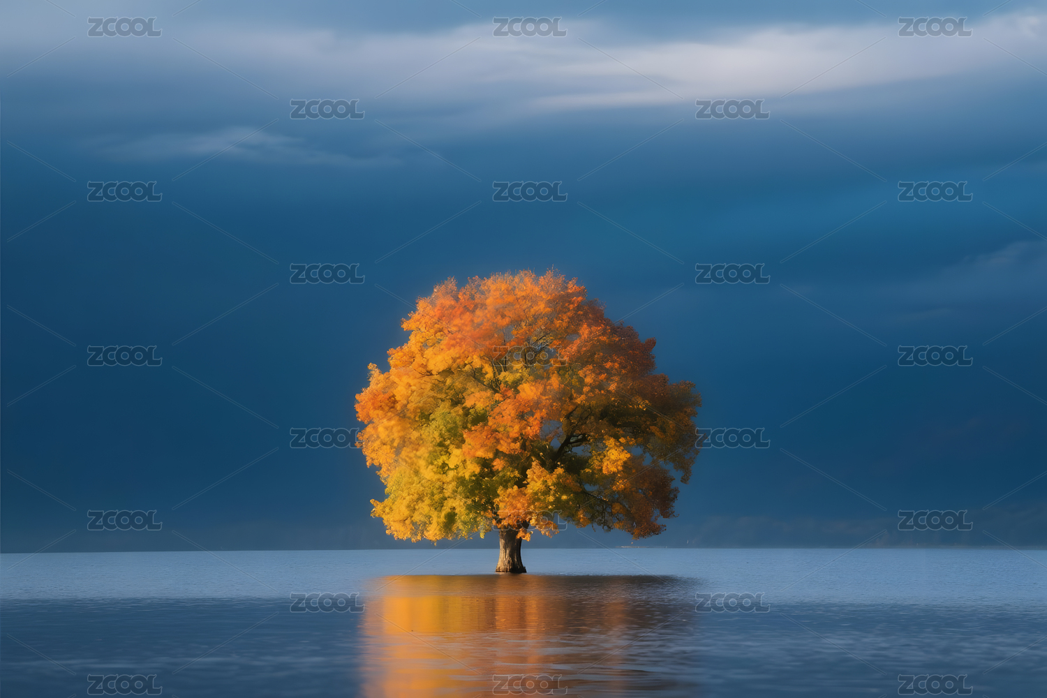 秋季,深秋,红色,枫树,倒影,植物,水,自然美,湖,宁静