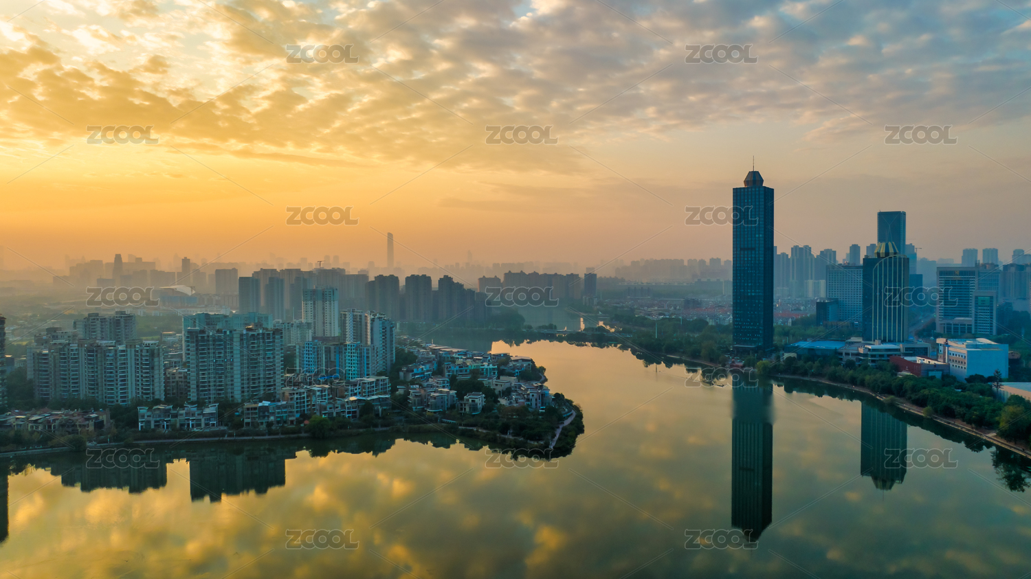 湖北武汉金银湖欧亚广场航天三江晚霞风光