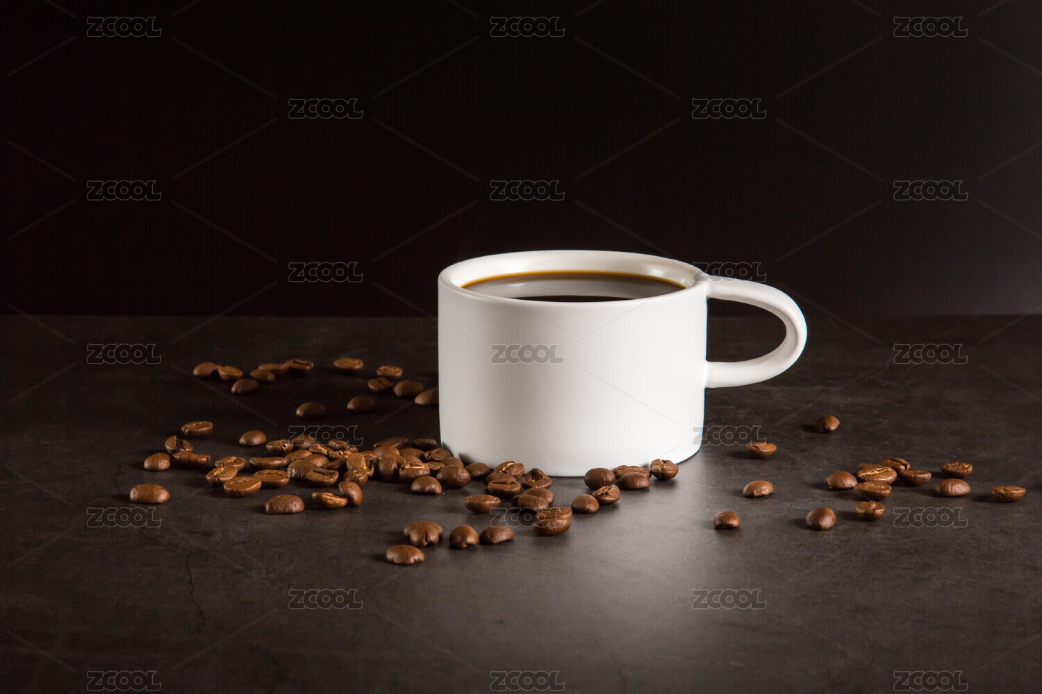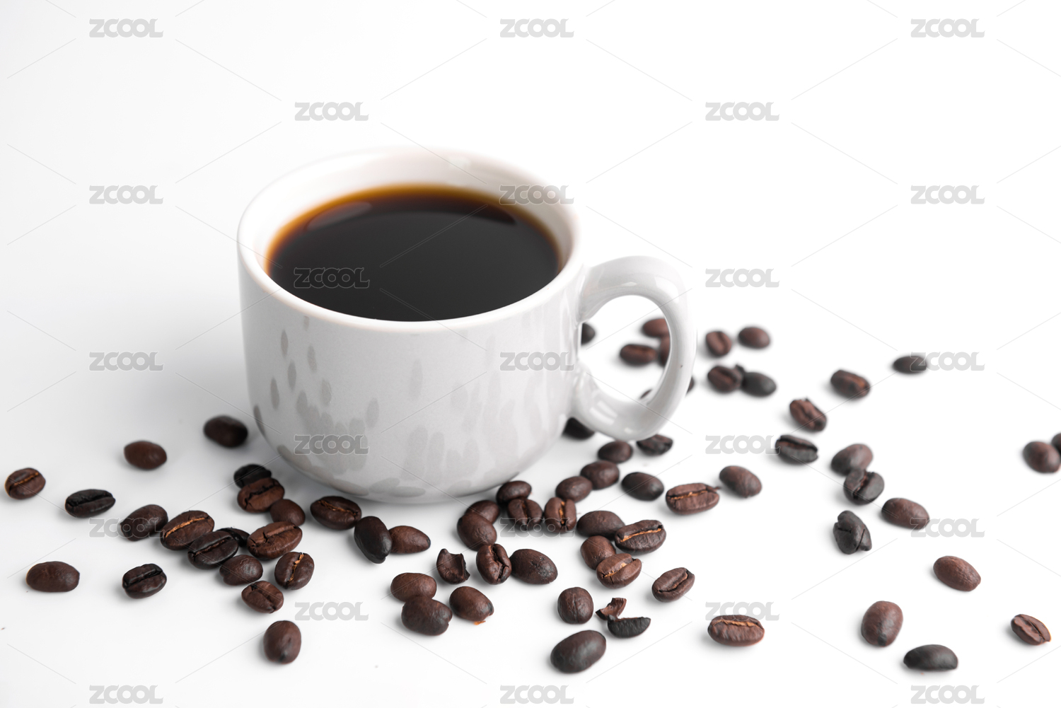 白色的咖啡杯和咖啡豆