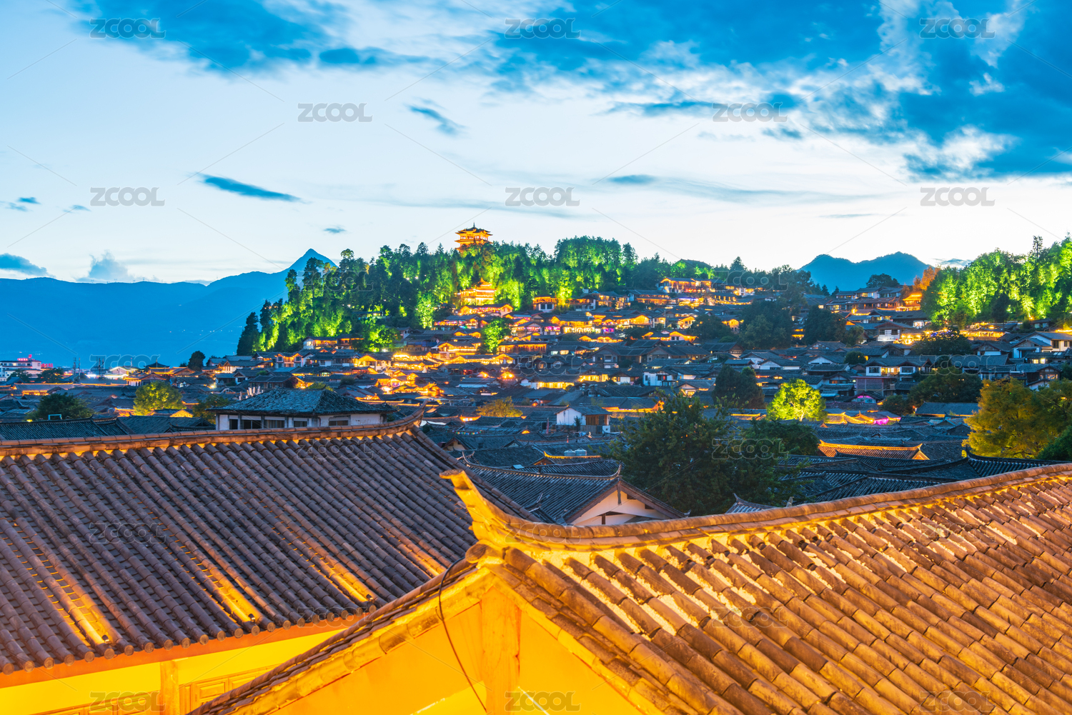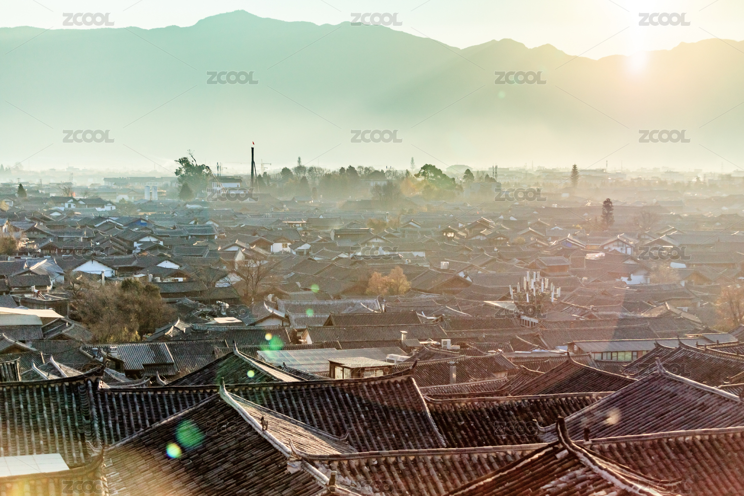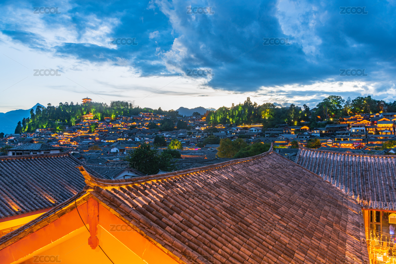 中国云南省丽江市,阴天云层下的丽江古城自然风光