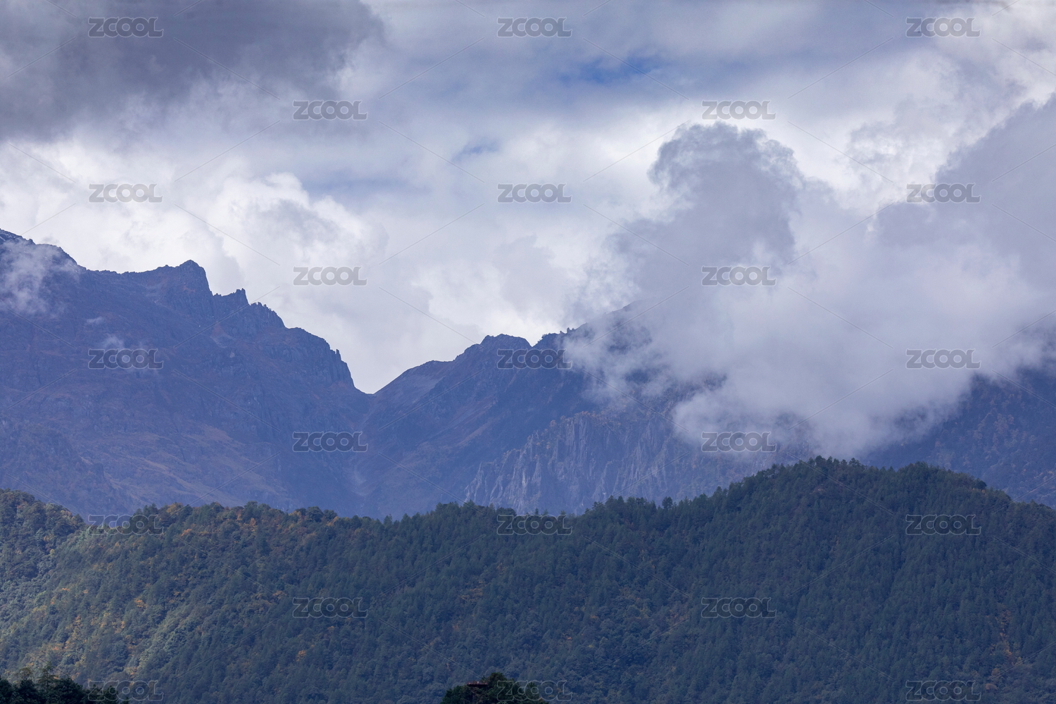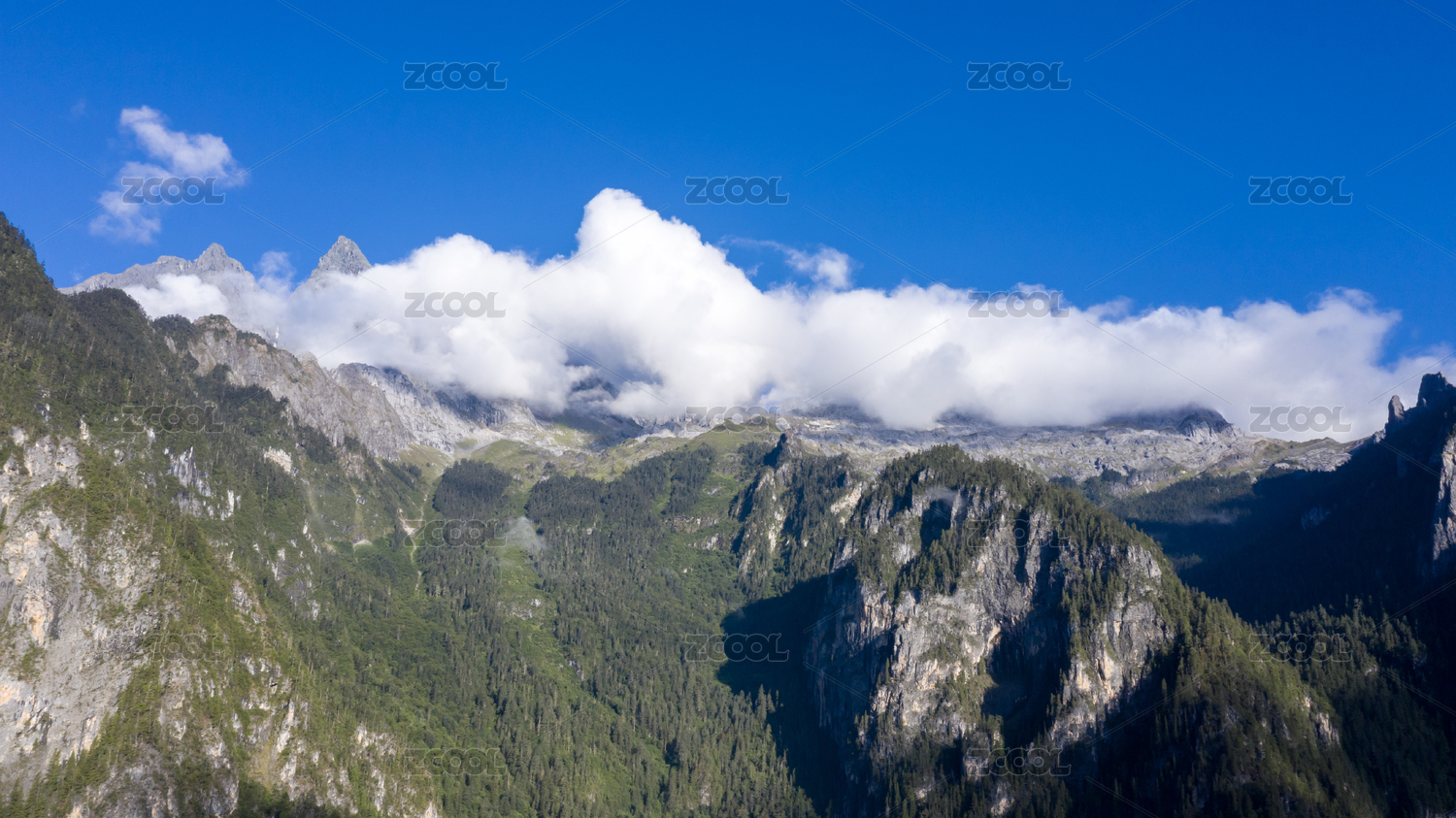 中国四川甘孜州泸定县海螺沟云雾缭绕贡嘎山自然景观