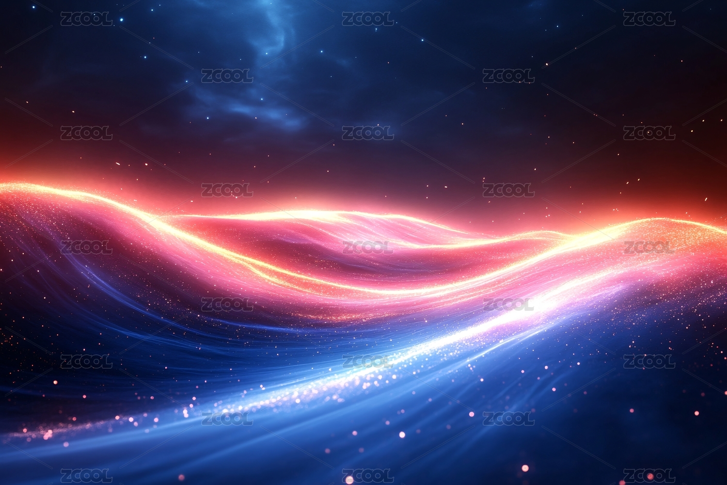 梦幻流动的蓝红光影波浪