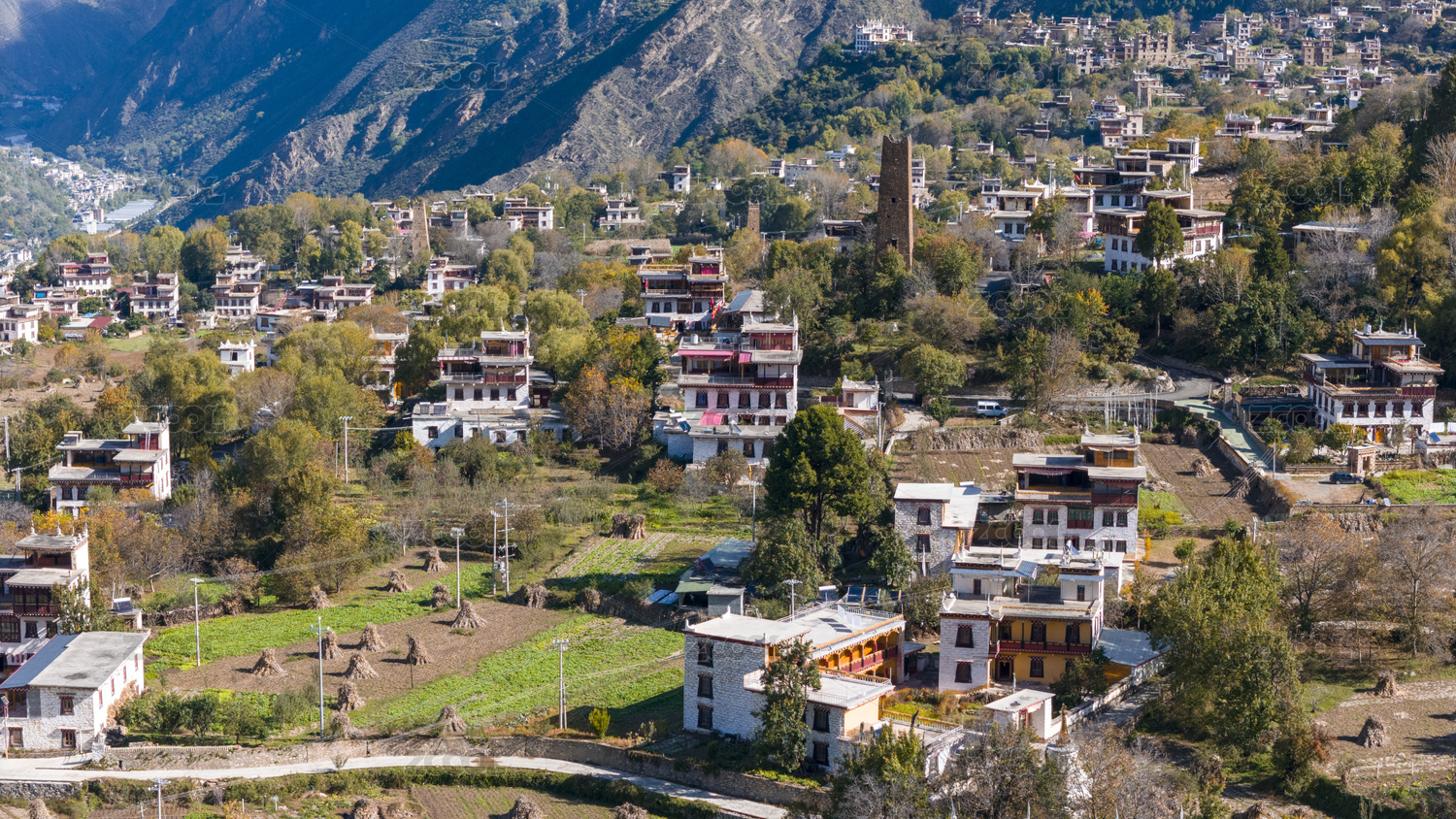 阳光下的四川甘孜丹巴的中里和甲居藏寨