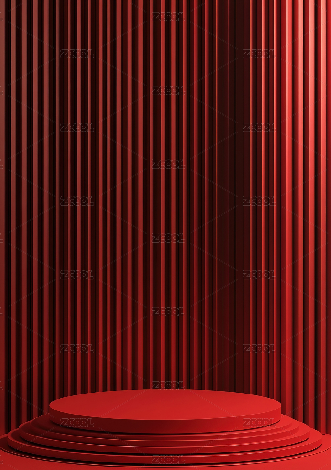 红色条纹背景下的圆形讲台展示