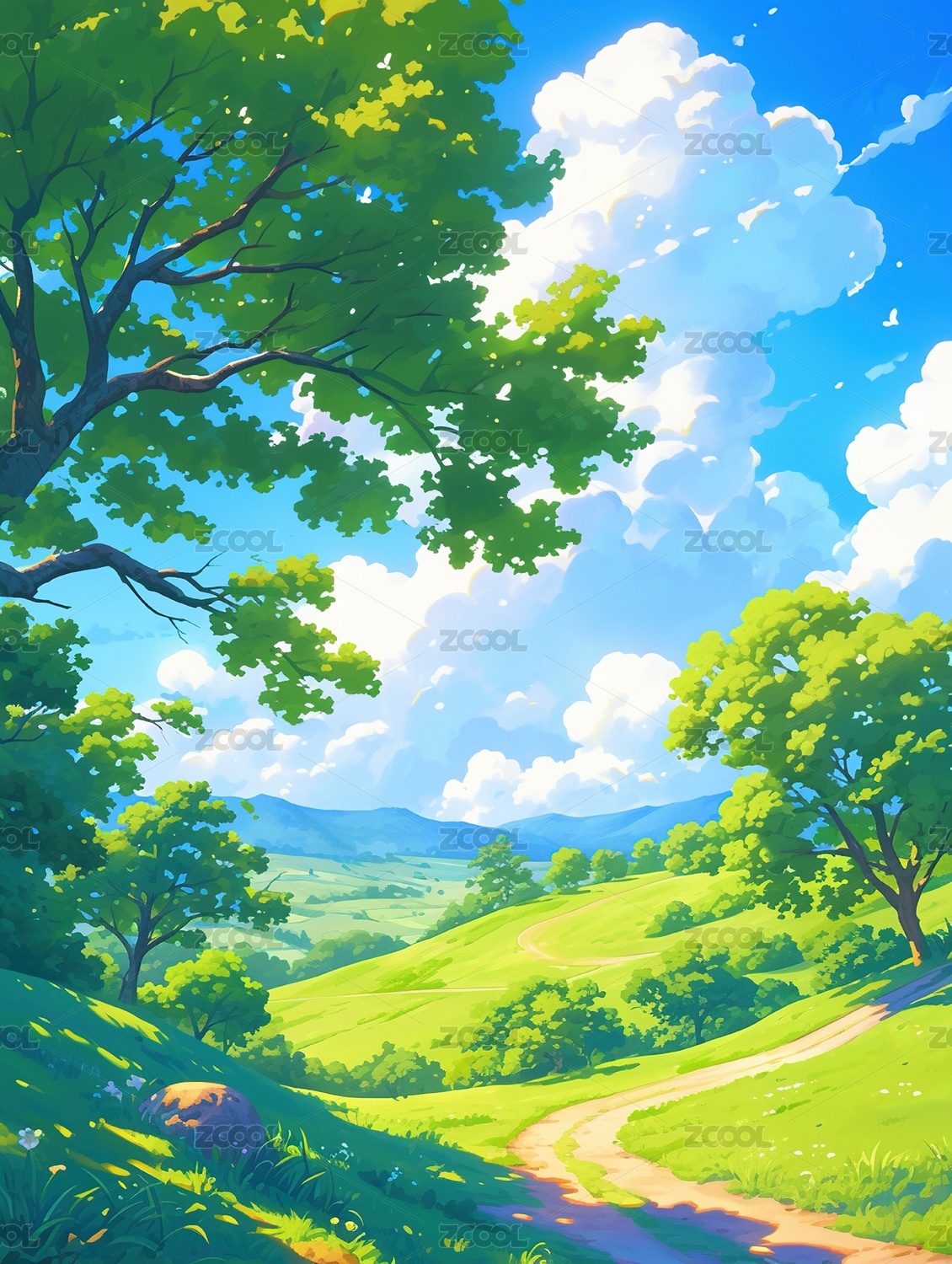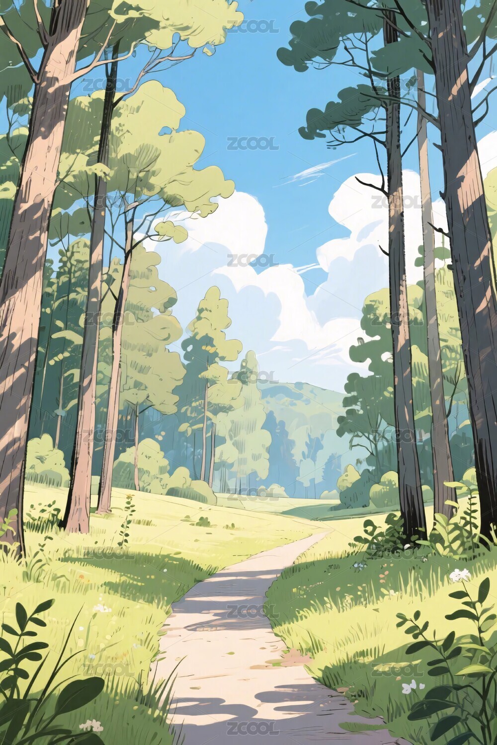 户外,树,风景,插画,植物,自然,宁静,天空,背景,云