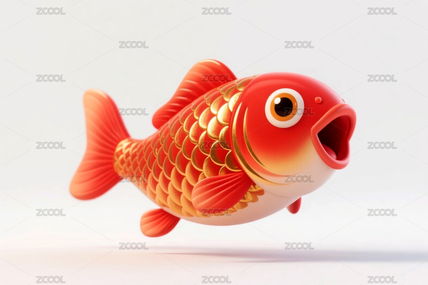 3D立体新年风格红色鲤鱼图案