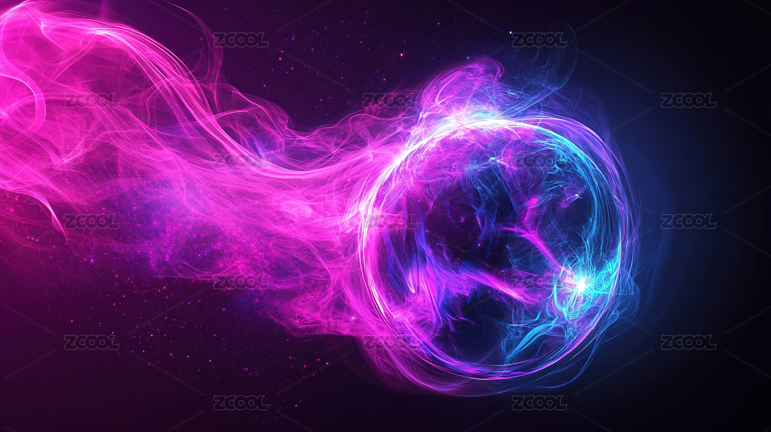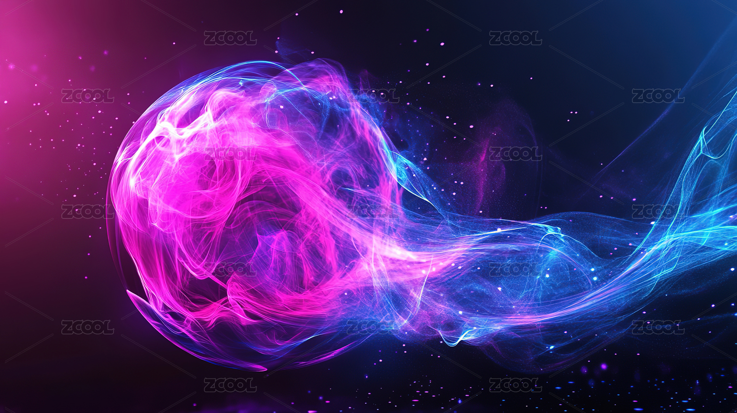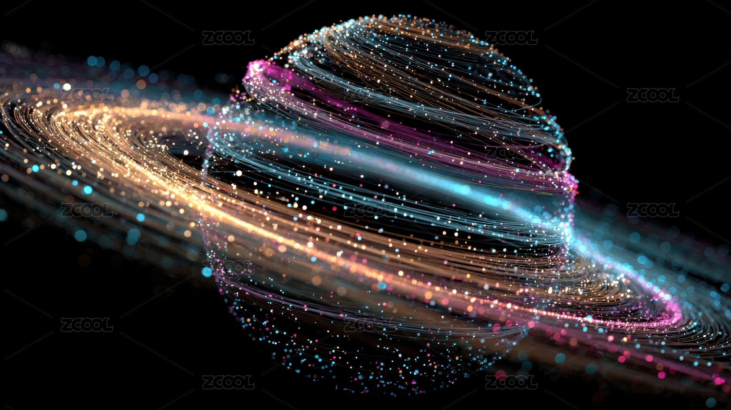 炫彩粒子环绕的球体艺术图