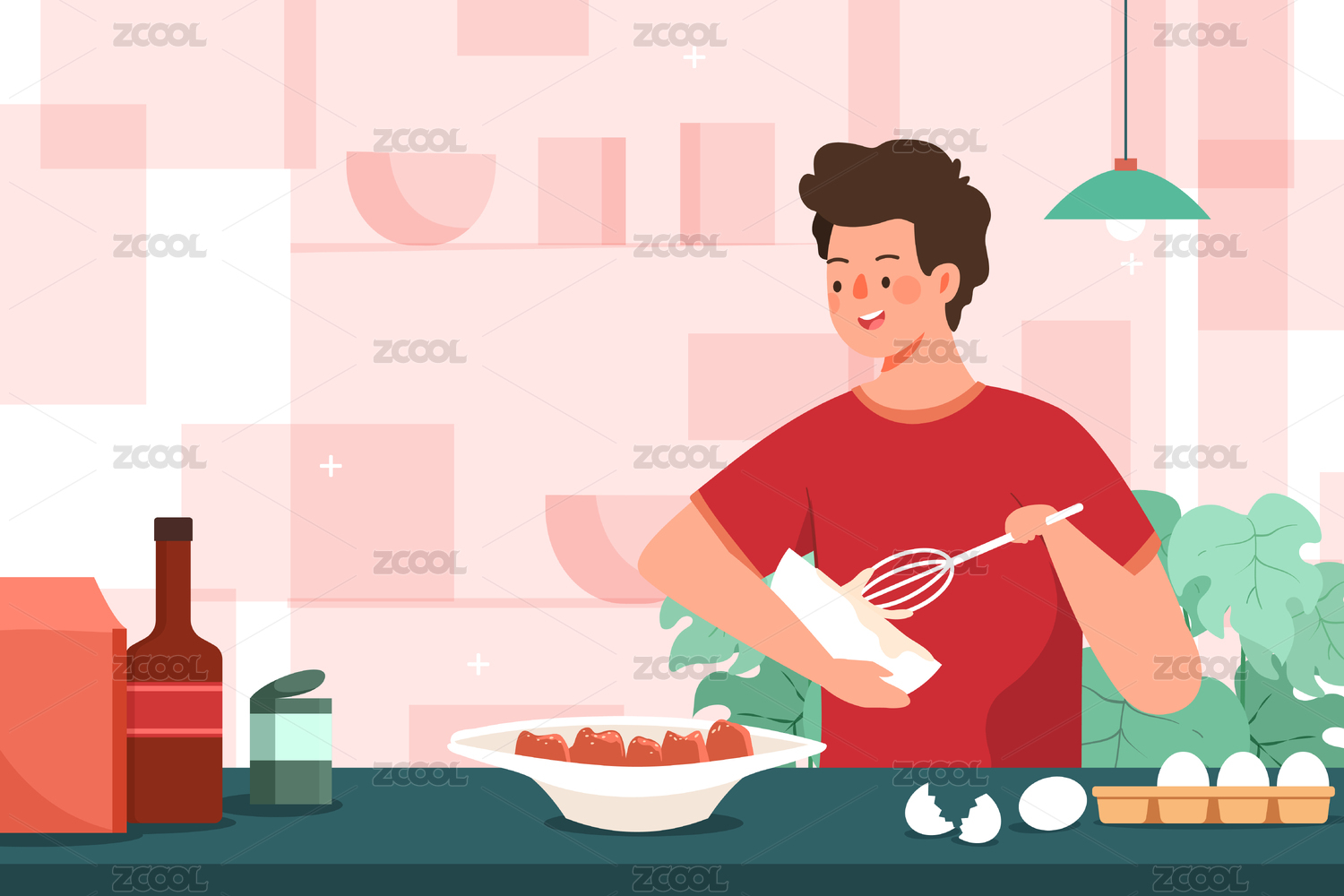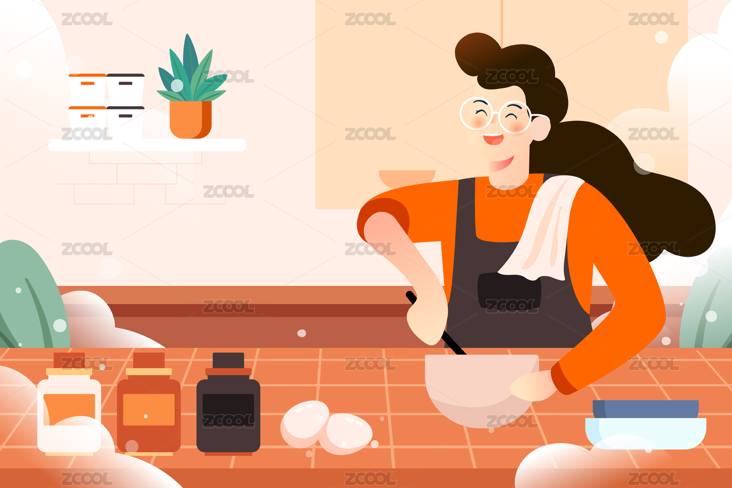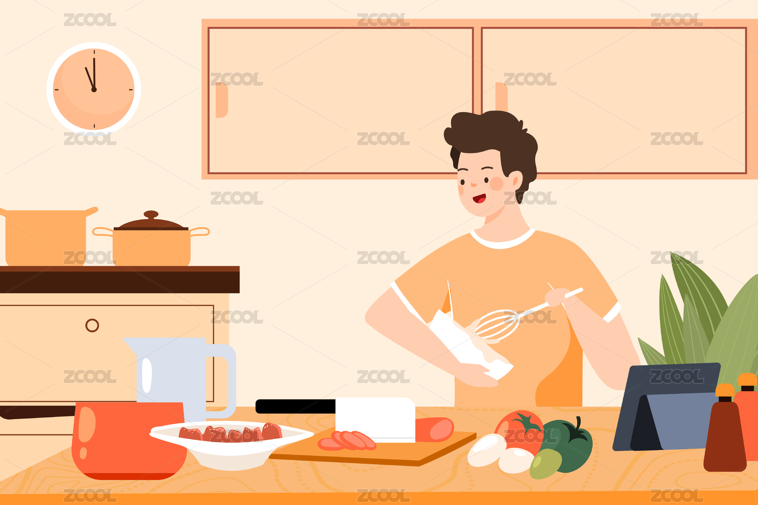 情侣厨房一起做饭烹饪美食健康餐饮饮食插画
