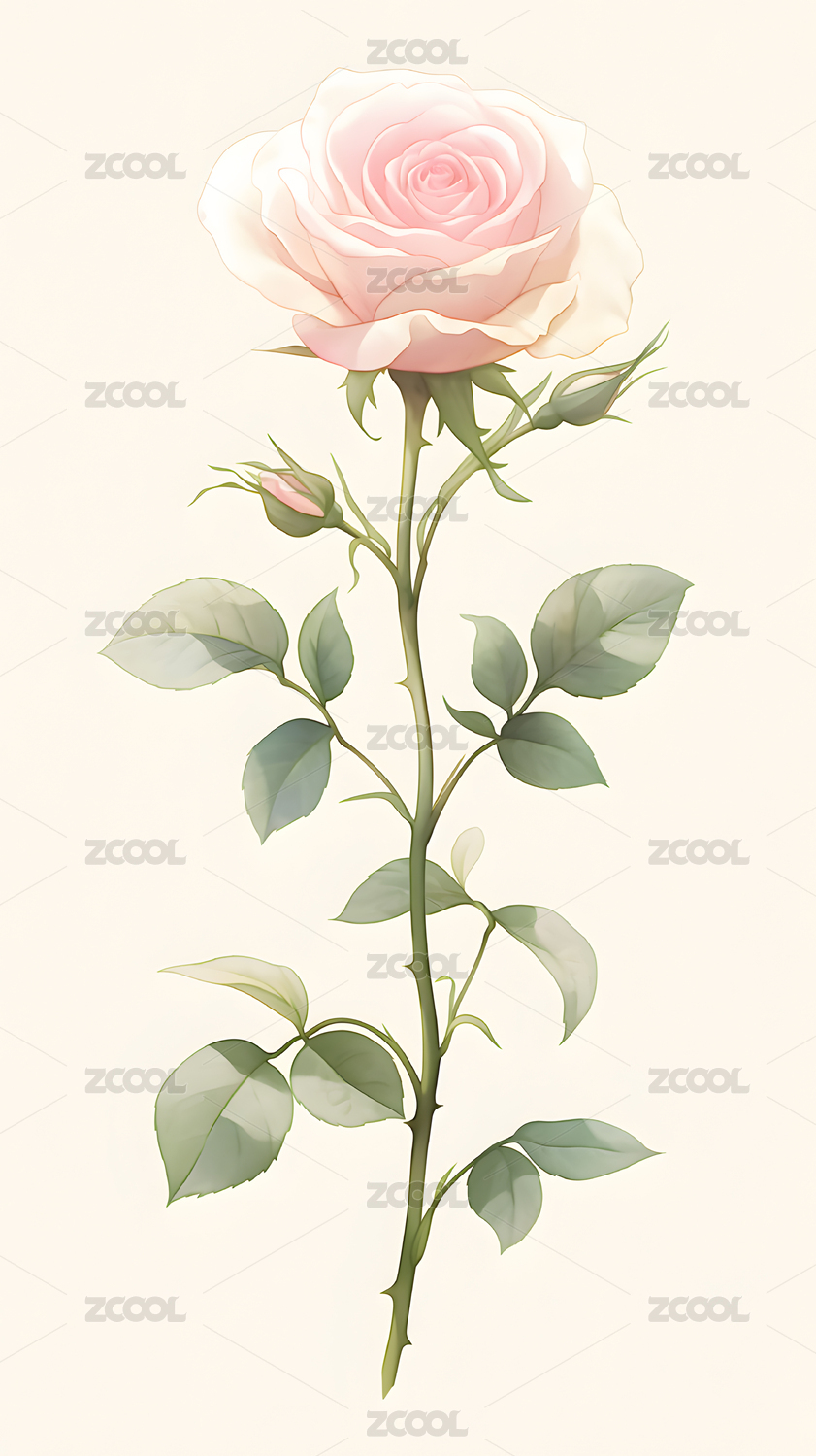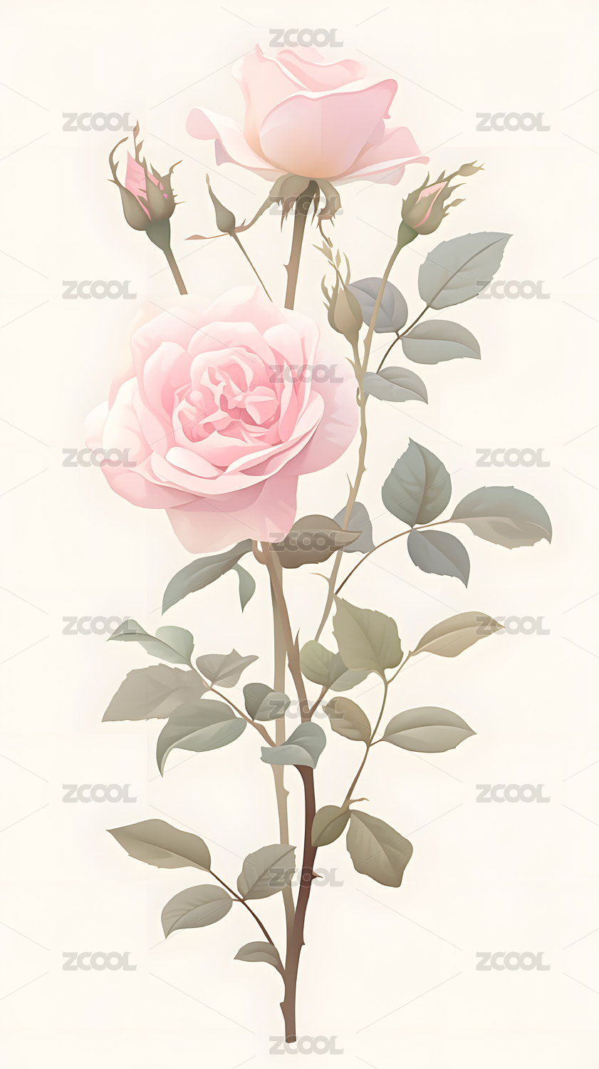 情人节节日唯美小清新玫瑰花鲜花花朵插画