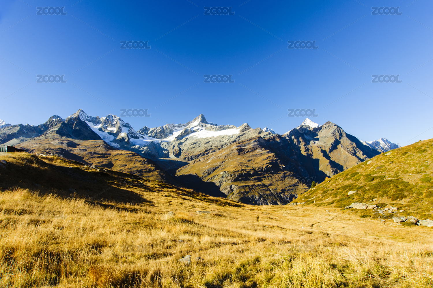 远望西欧瑞士阿尔卑斯山少女峰雪山