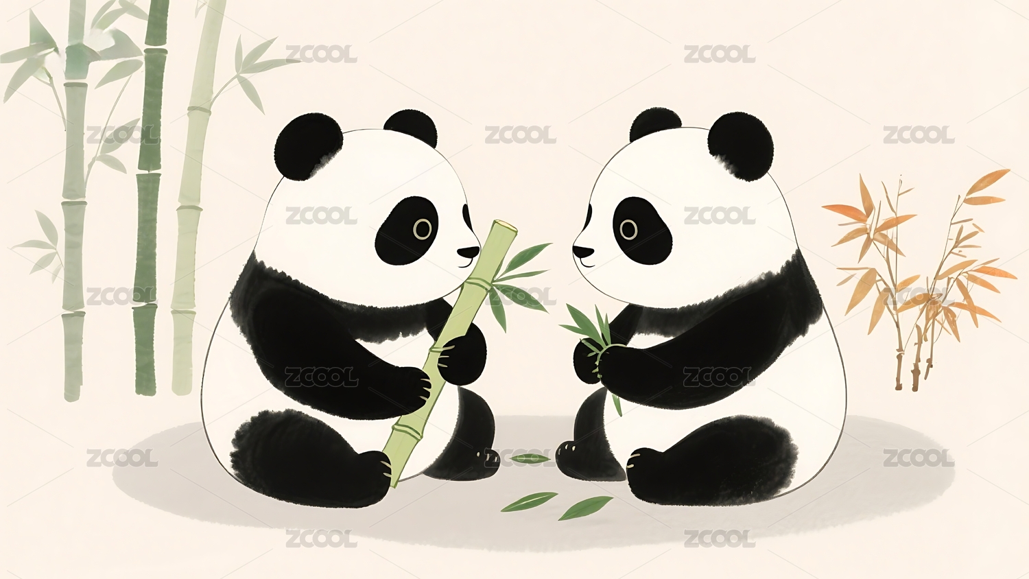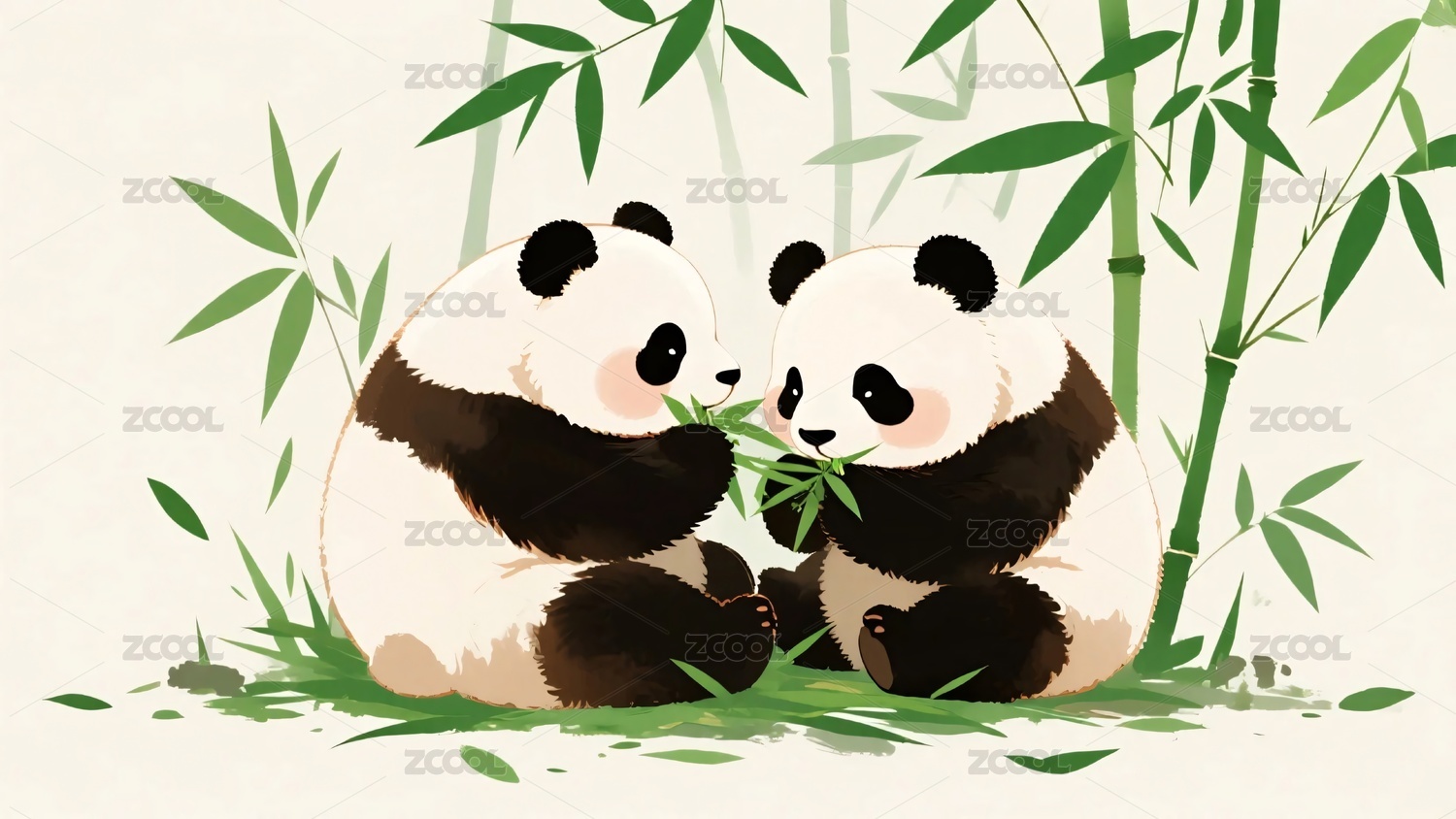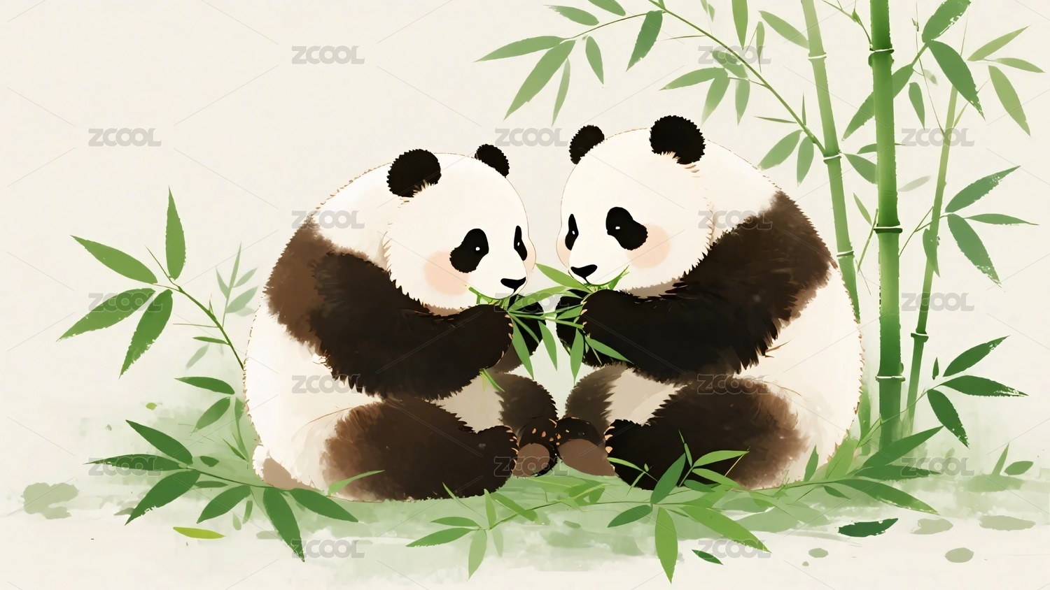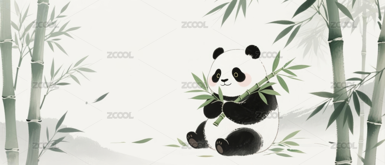 水墨熊猫雅致感竹林场景