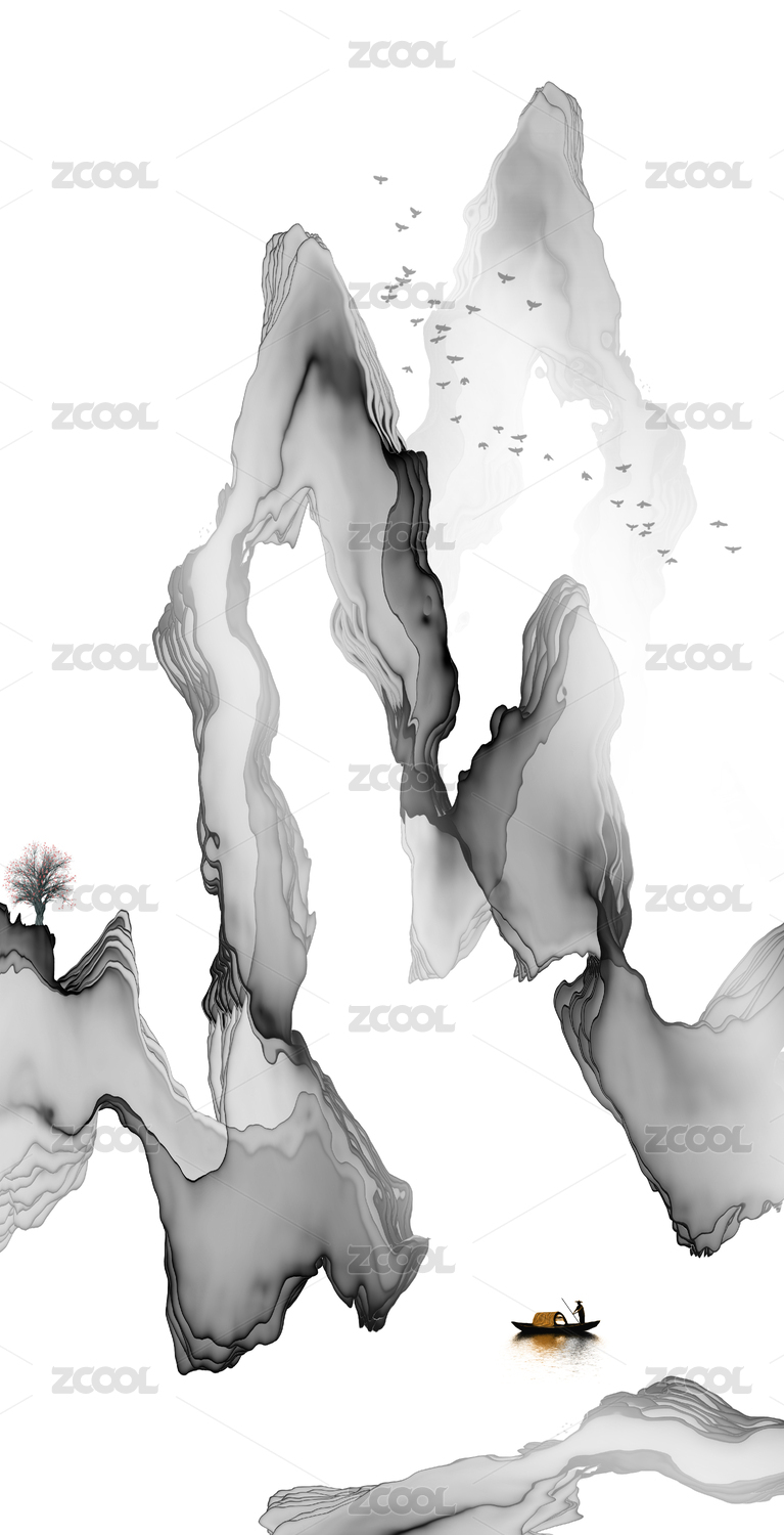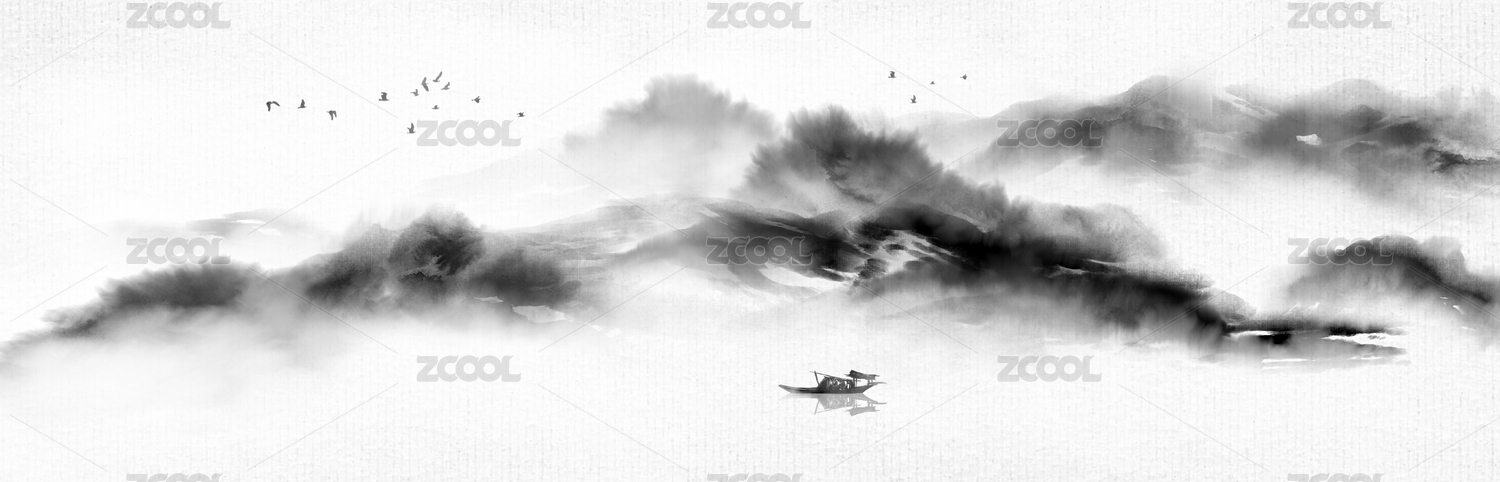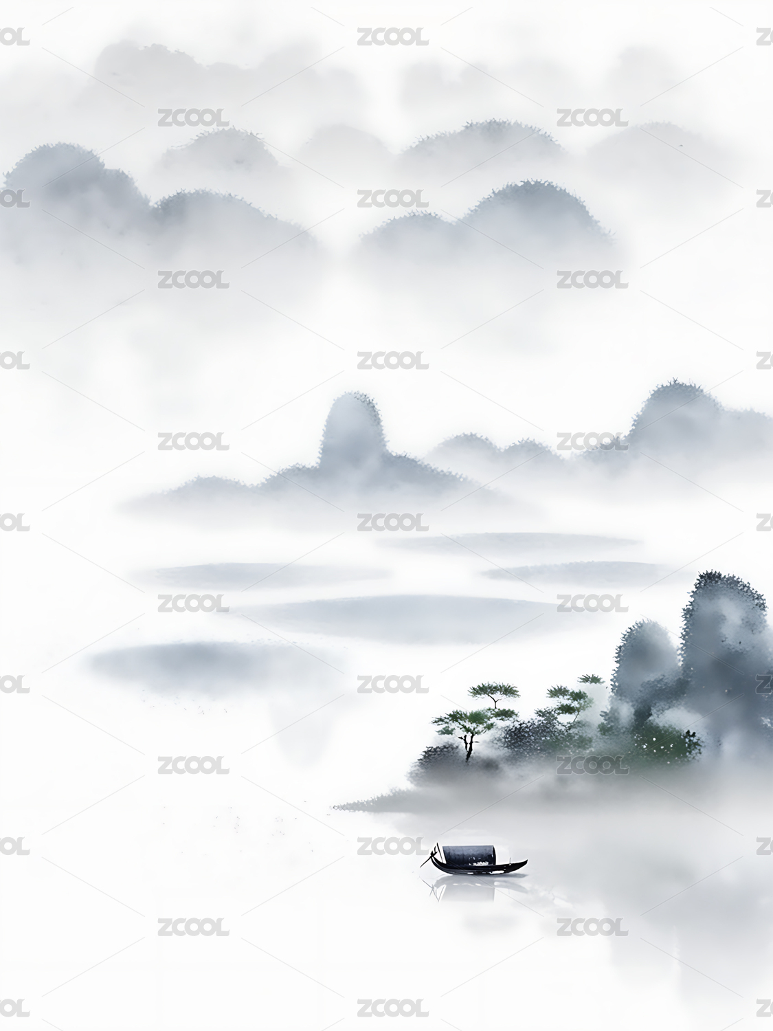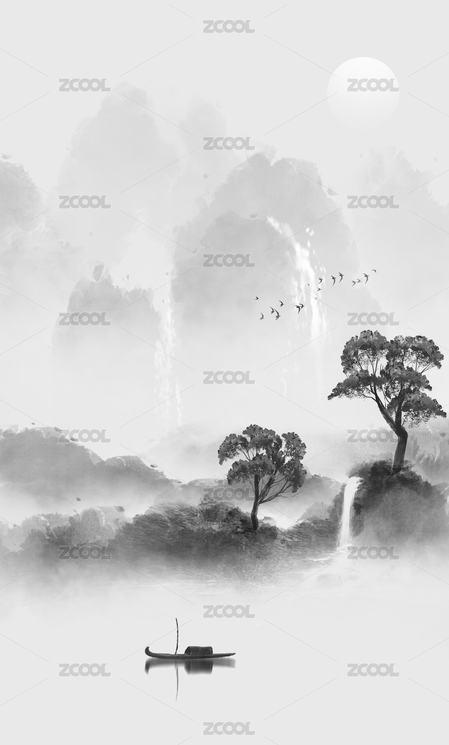 中国风,水墨,山水,意境,写意,背景,抽象,绘画,太阳,渔船