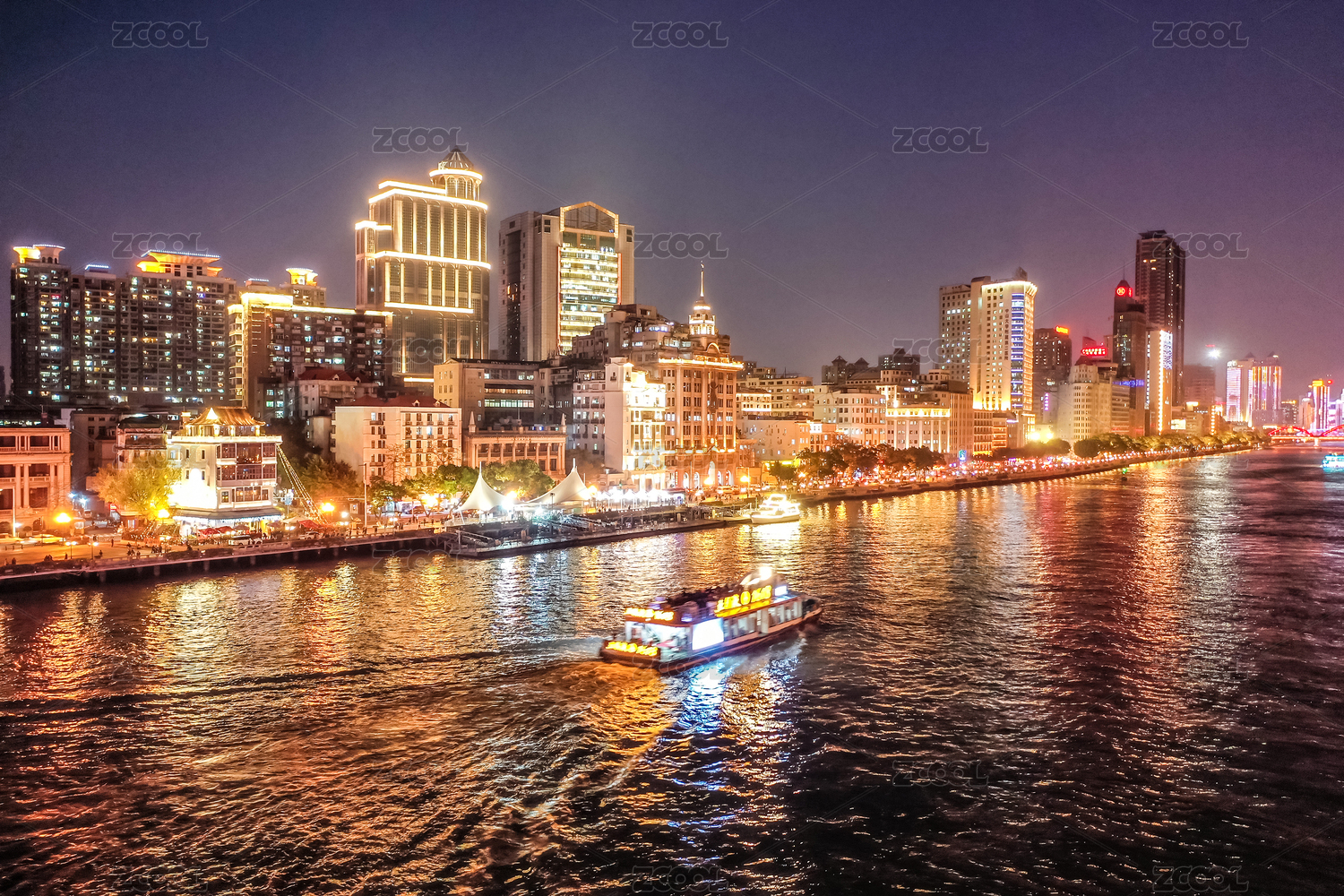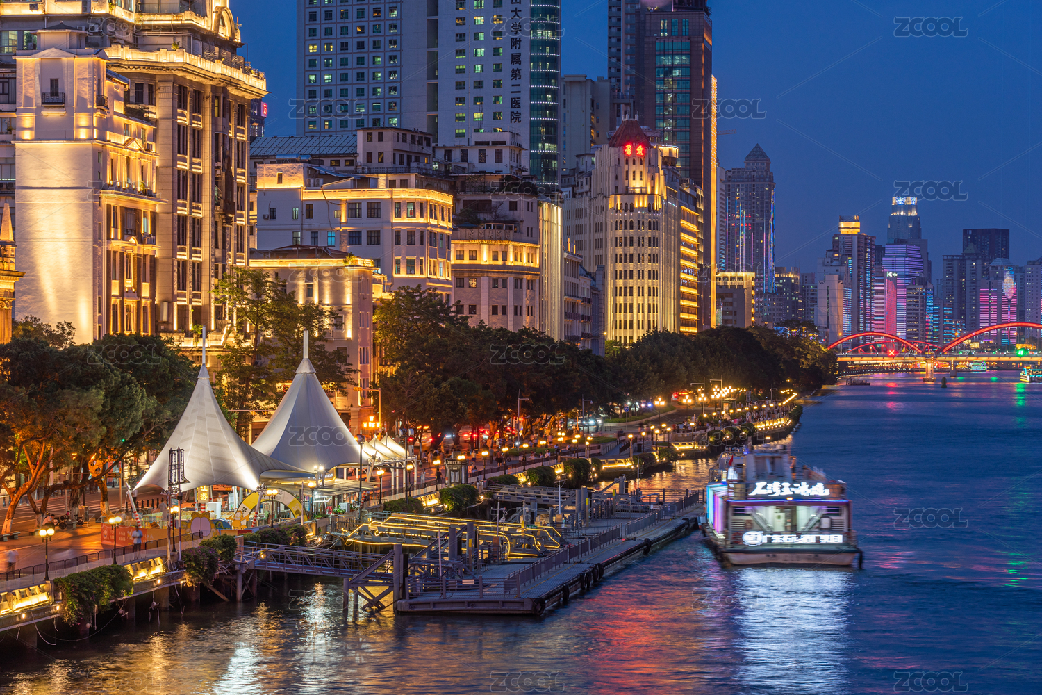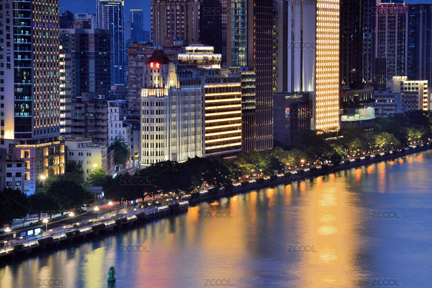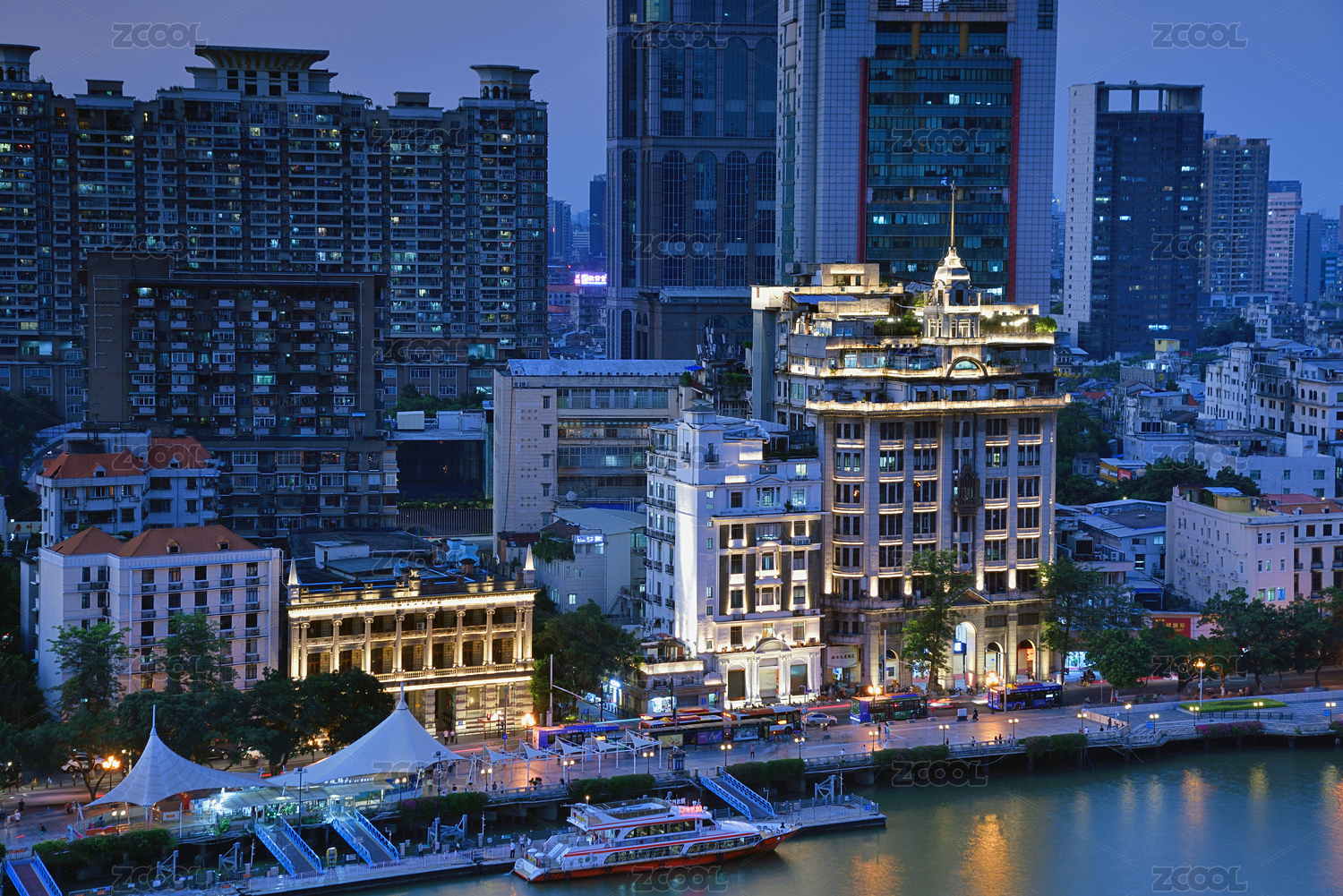 广州粤海关旧址大楼和长堤古建筑风光夜景