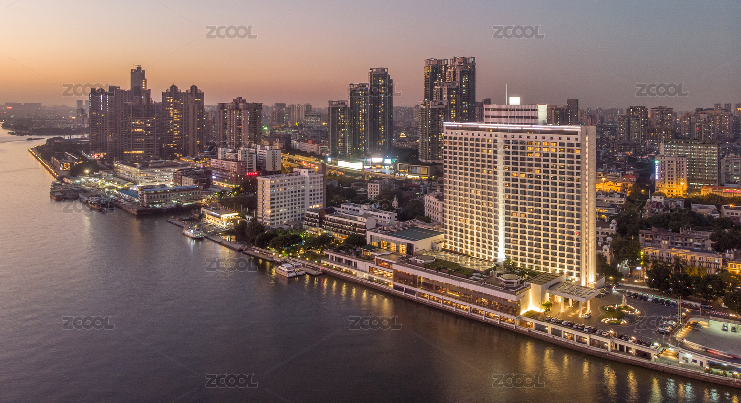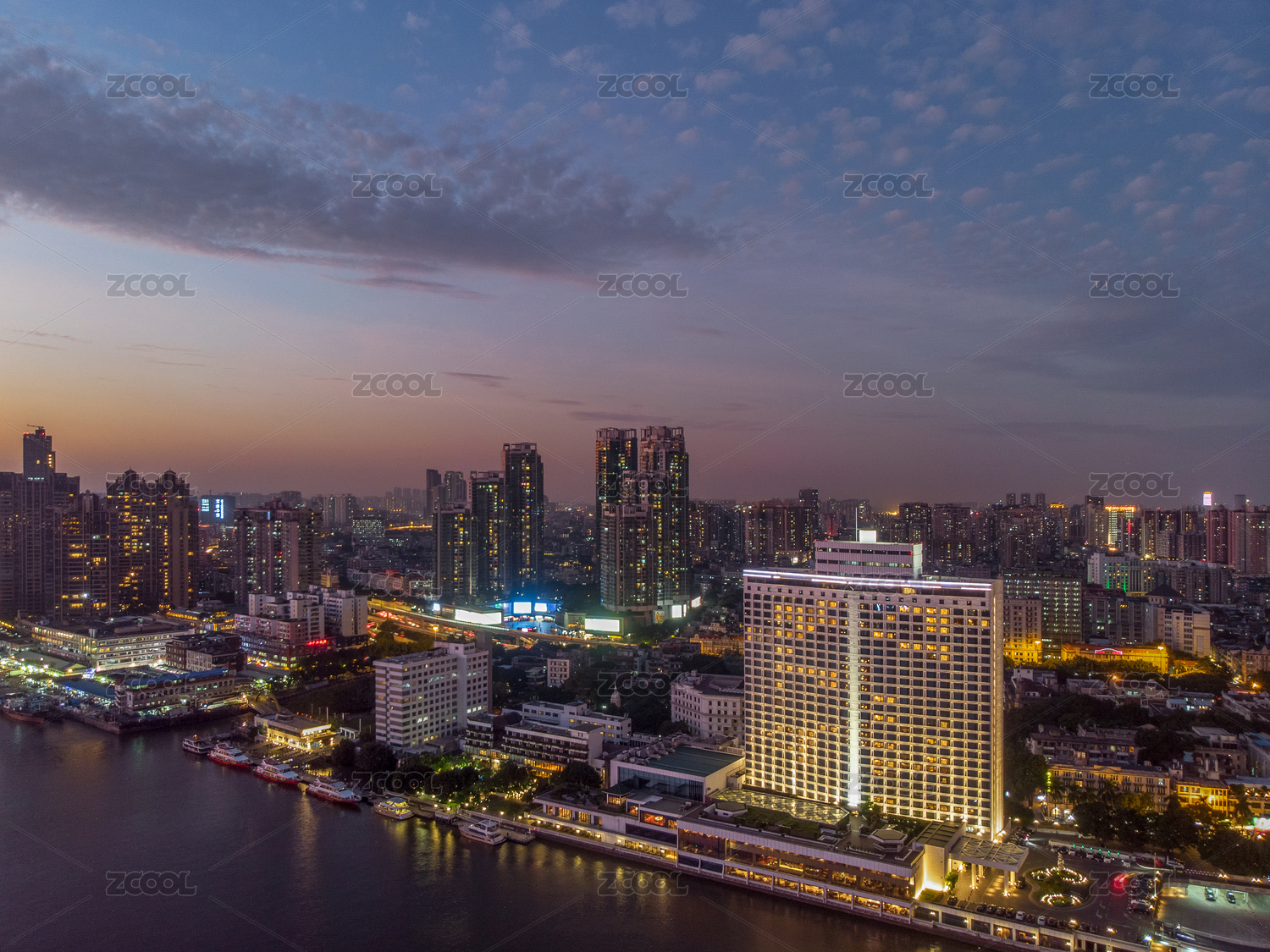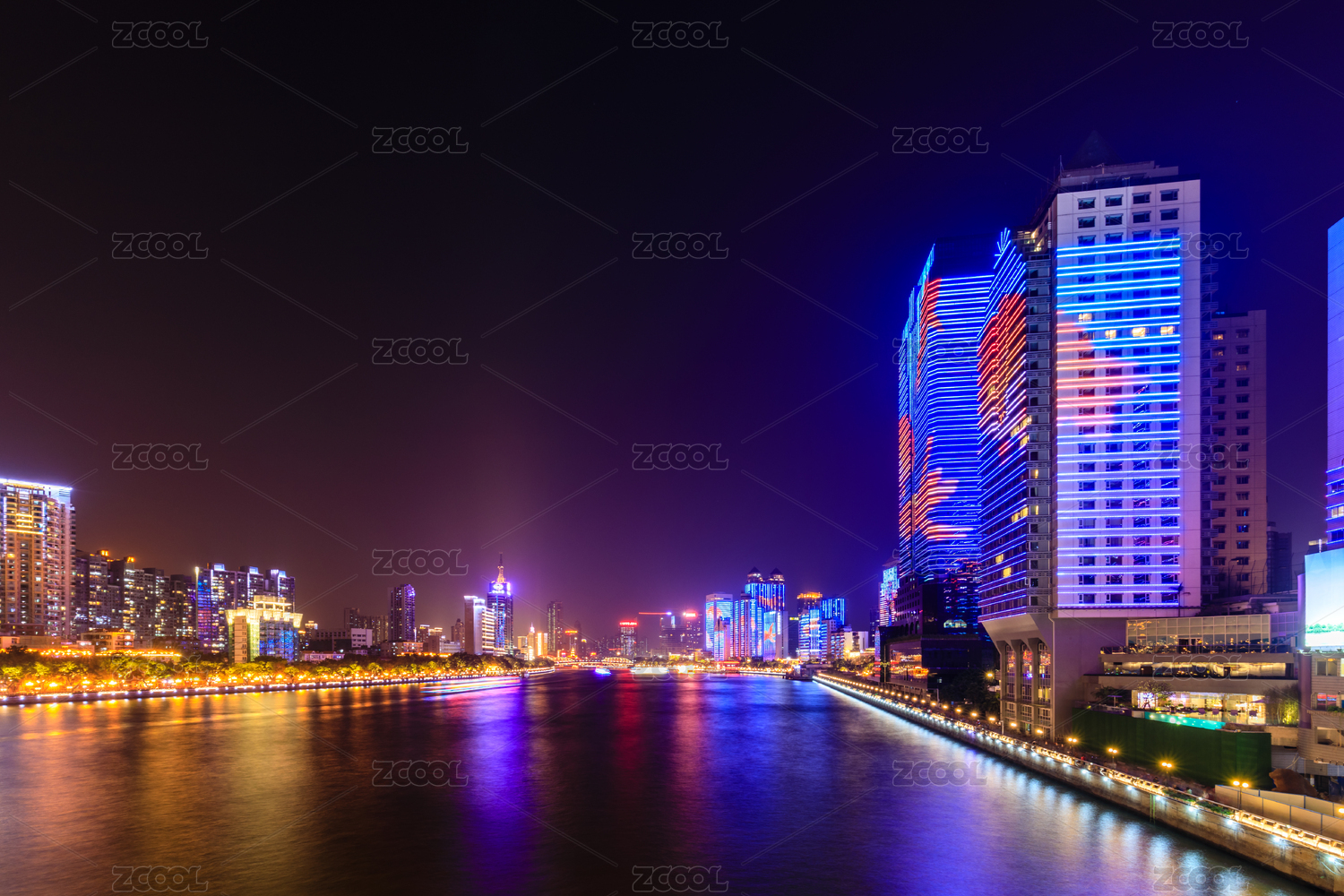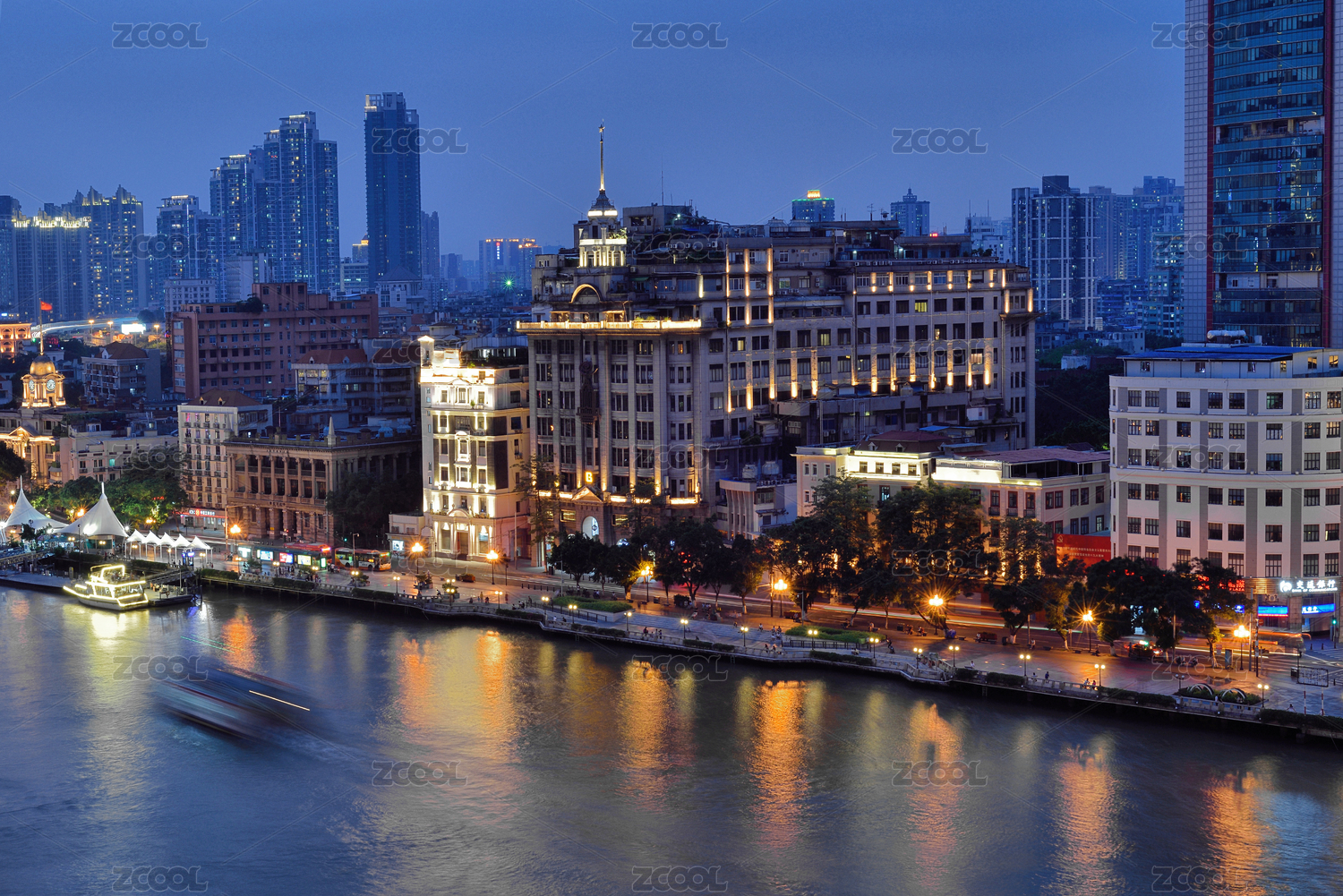 广州粤海关旧址大楼和长堤古建筑风光夜景