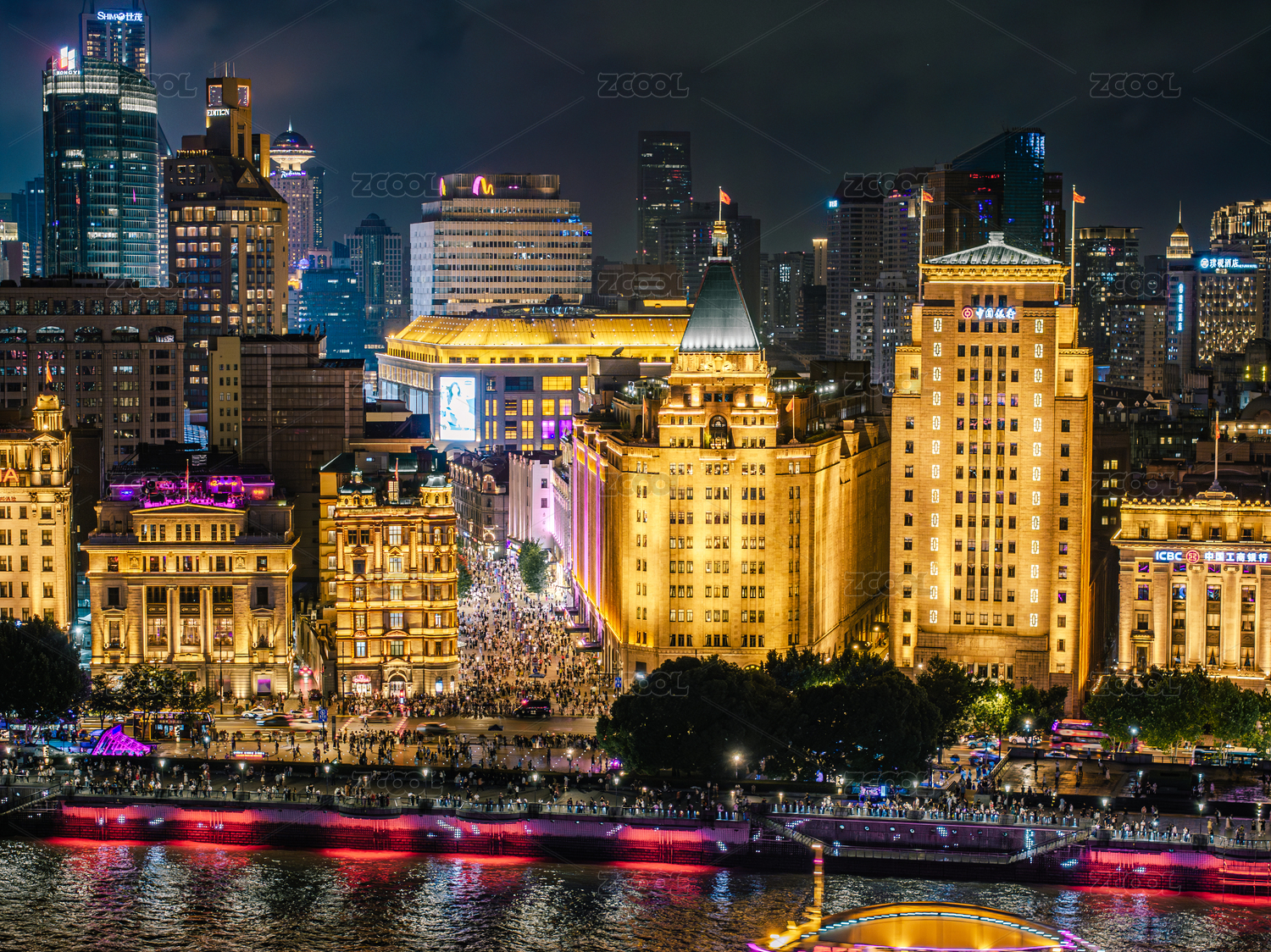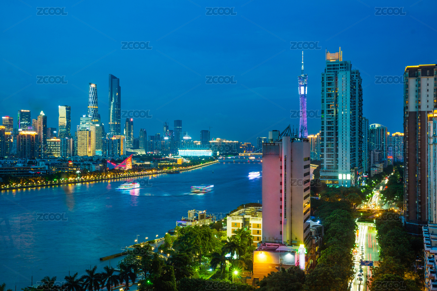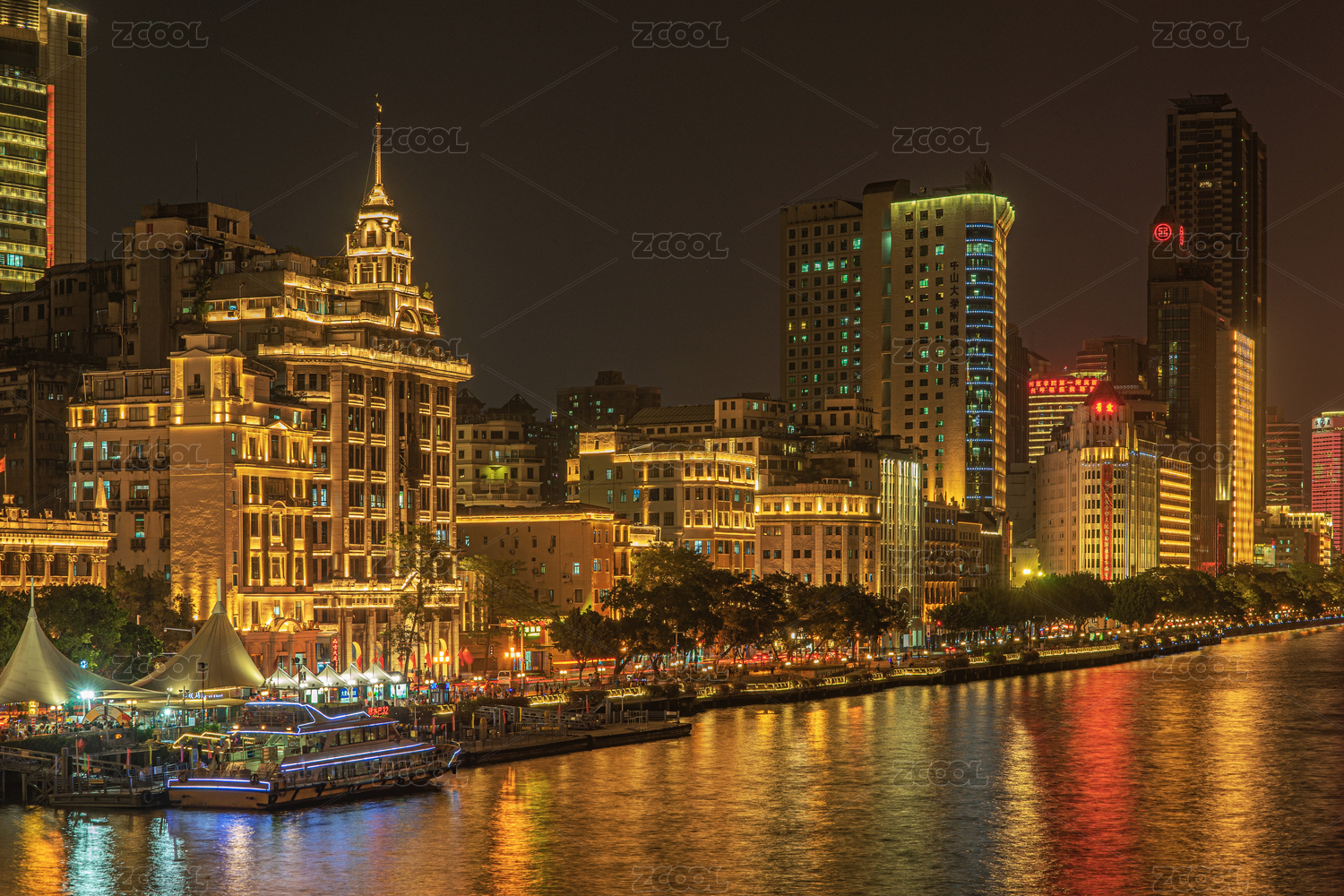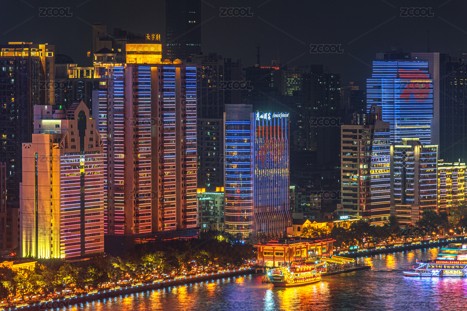 广州粤海关旧址大楼和长堤古建筑风光夜景