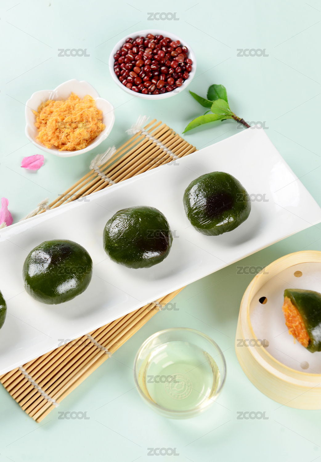 食物,食品,清明节,艾草团,糯米团,甜点,糕点,传统节日,红豆,蛋黄