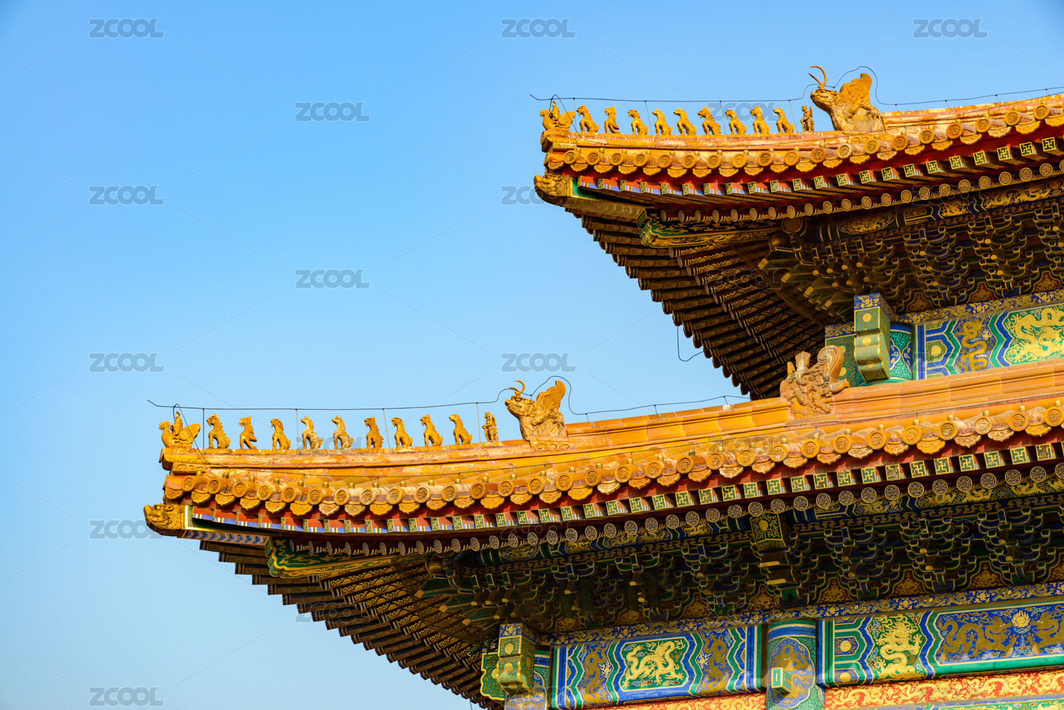 中国北京故宫东方古代建筑屋檐上的脊兽