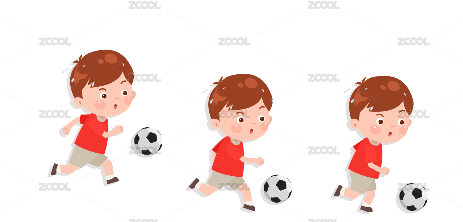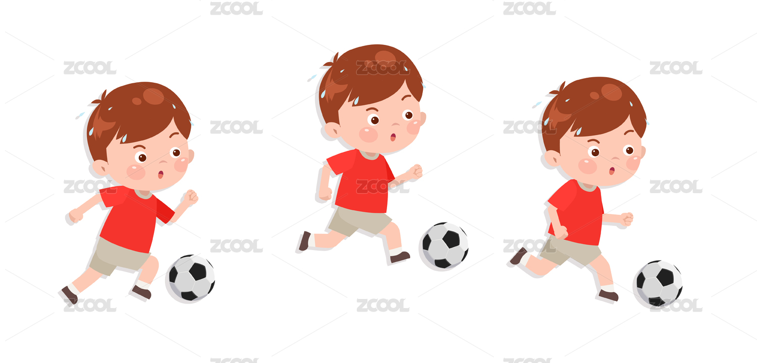 小孩踢足球练习儿童踢球运动会比赛矢量图